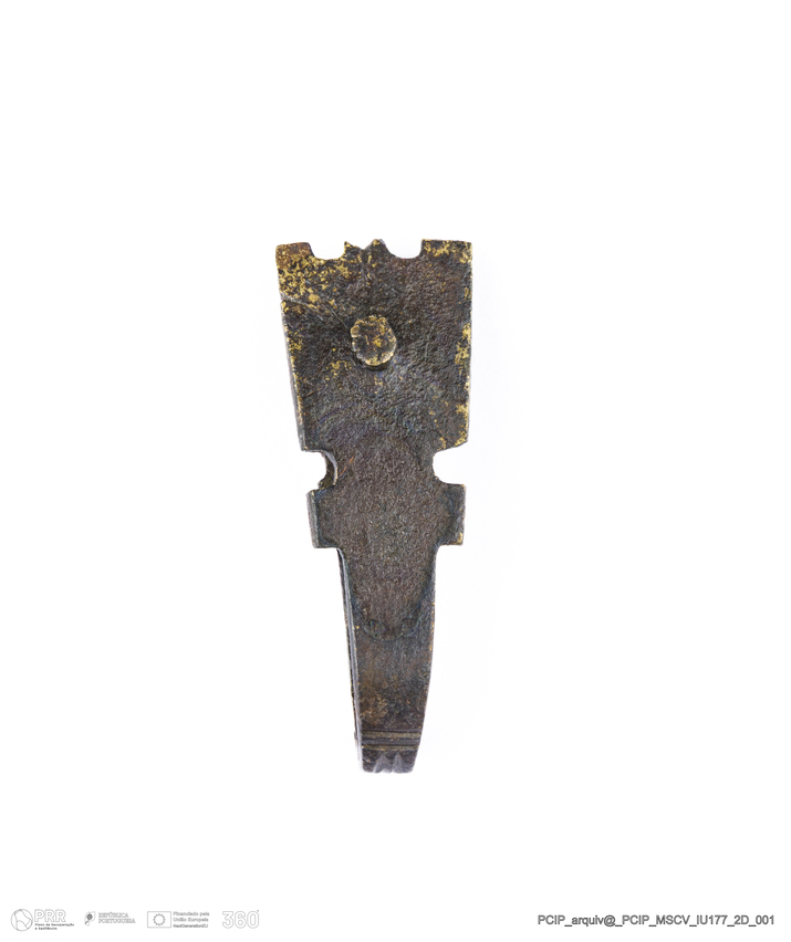 Matéria/Técnica: Metal; Cronologia: Século XVII; Autoria: Desconhecida; Dimensões: Comprimento: 27mm; Largura: 10mm; Espessura: 4mm.