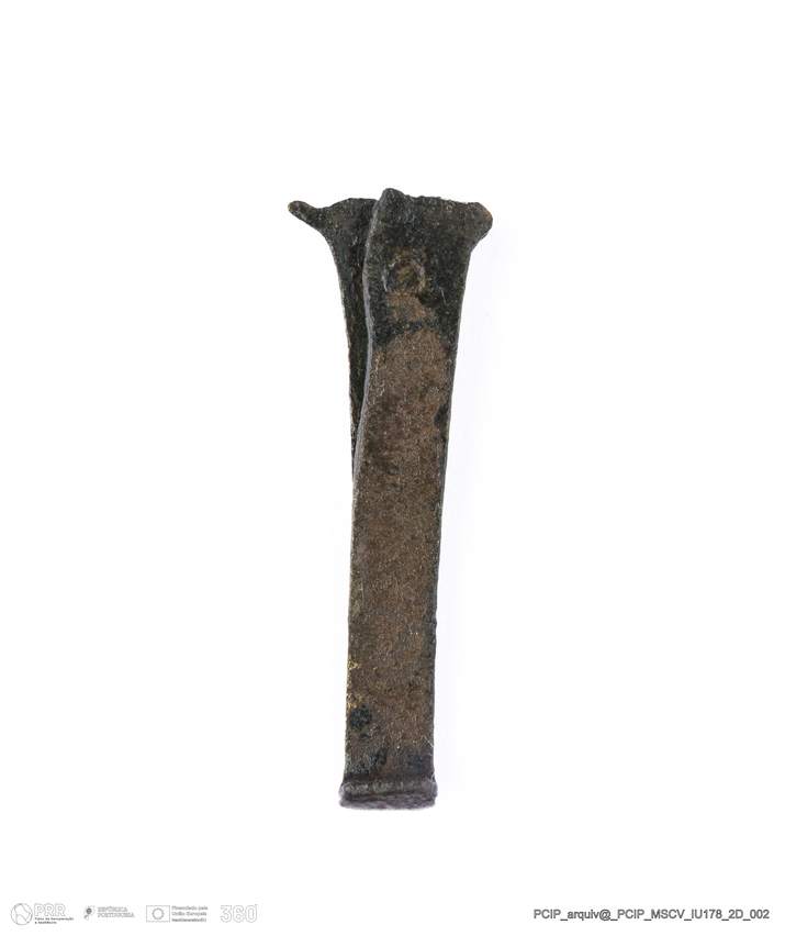 Matéria/Técnica: Metal; Cronologia: Século XVII; Autoria: Desconhecida; Dimensões: Comprimento: 32mm; Largura: 10mm; Espessura: 4mm.