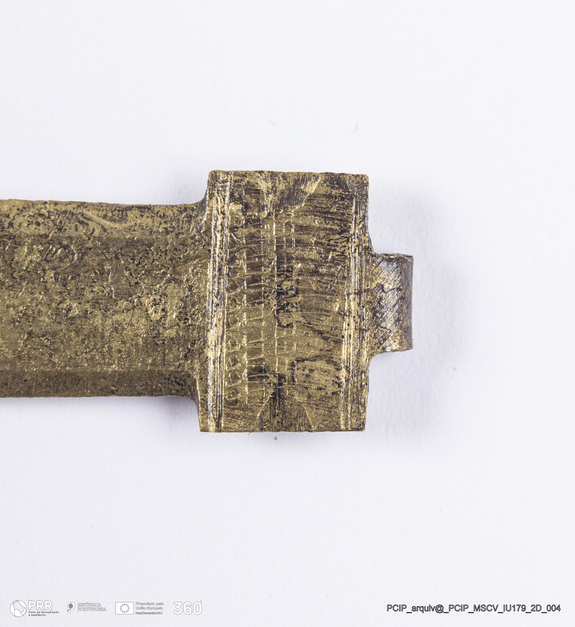 Matéria/Técnica: Metal; Cronologia: Século XVII; Autoria: Desconhecida; Dimensões: Comprimento: 56mm; Largura: 16mm; Espessura: 4mm.