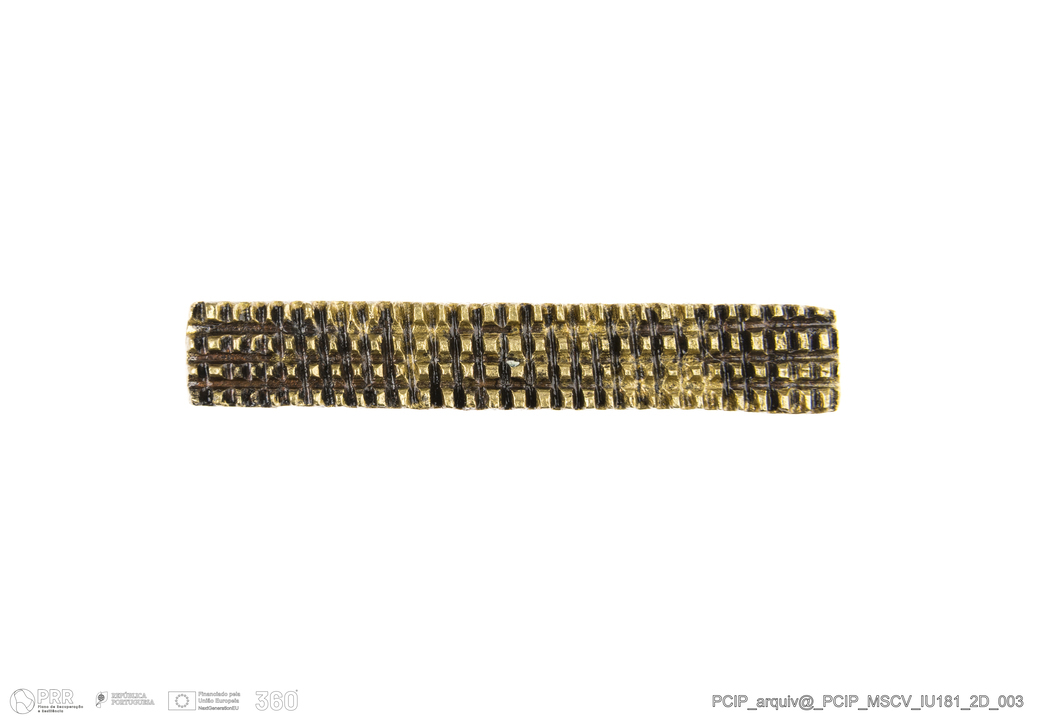 Matéria/Técnica: Metal; Cronologia: Século XVII; Autoria: Desconhecida; Dimensões: Comprimento: 48mm; Largura: 33mm; Espessura: 6mm.