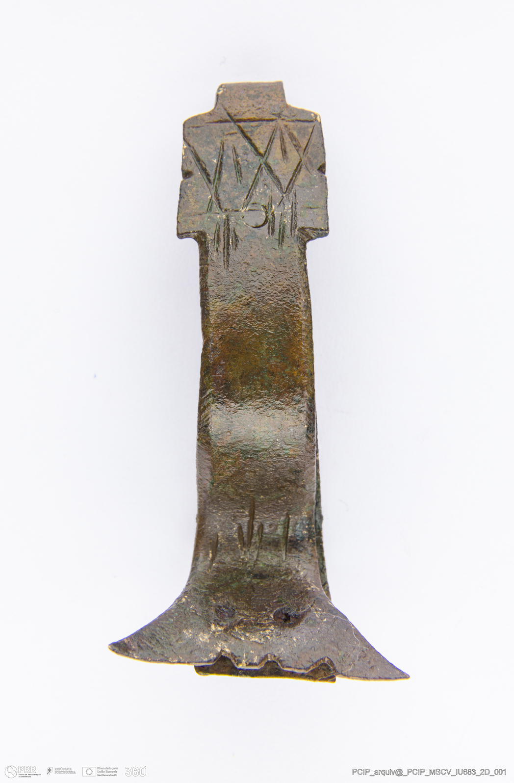 Matéria/Técnica: Liga de cobre; Cronologia: Século XVII; Autoria: Desconhecida; Dimensões: Altura: 57mm; Largura: 28mm; Espessura: 4mm.