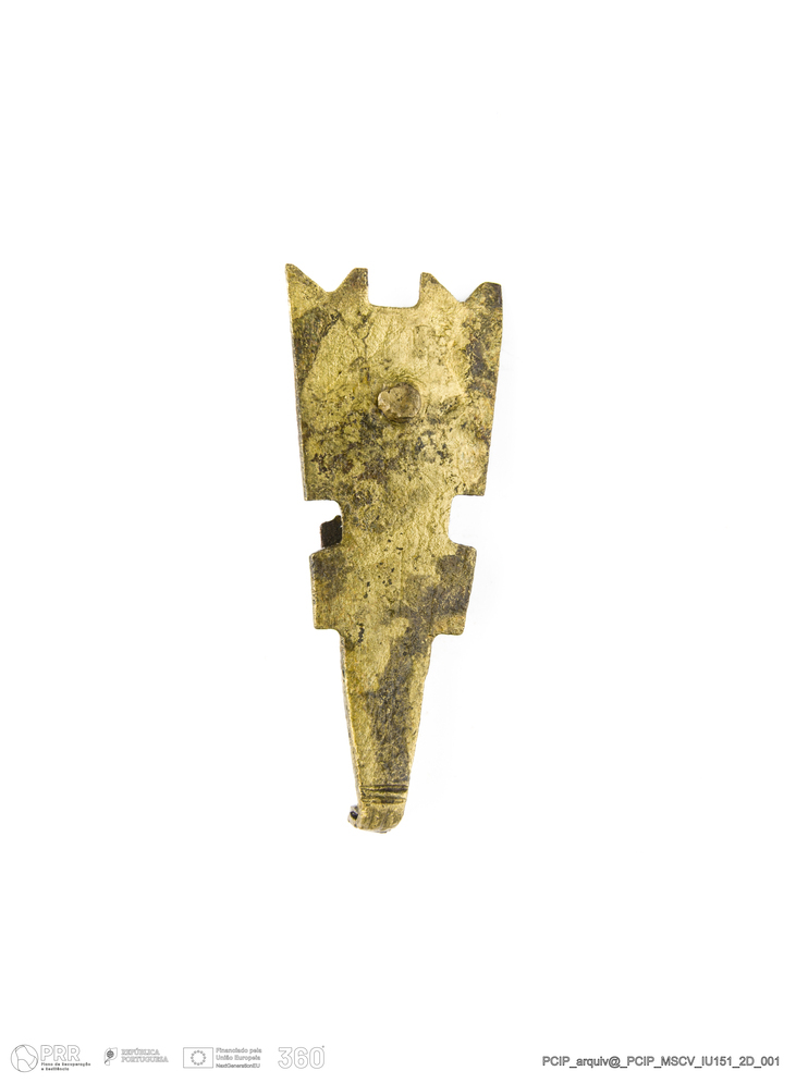 Matéria/Técnica: Metal; Cronologia: Século XVII; Autoria: Desconhecida; Dimensões: Comprimento: 26mm; Largura: 11mm; Espessura: 4mm.