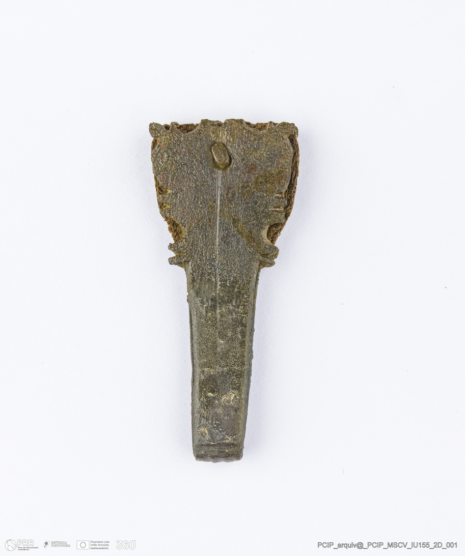 Matéria/Técnica: Metal; Cronologia: Século XVII; Autoria: Desconhecida; Dimensões: Comprimento: 38mm; Largura: 16mm; Espessura: 4,5mm.