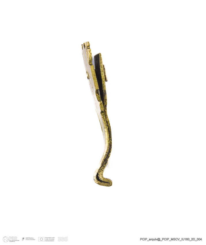Matéria/Técnica: Metal; Cronologia: Século XVII; Autoria: Desconhecida; Dimensões: Comprimento: 28,5mm; Largura: 9,5mm; Espessura: 4mm.