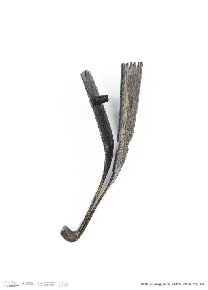 Matéria/Técnica: Metal; Cronologia: Século XVII; Autoria: Desconhecida; Dimensões: Comprimento: 49mm; Largura: 19mm; Espessura: 5mm.