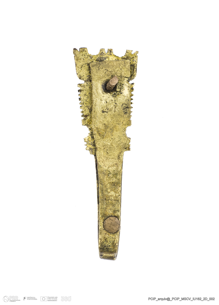 Matéria/Técnica: Metal; Cronologia: Século XVII; Autoria: Desconhecida; Dimensões: Comprimento: 49mm; Largura: 15mm; Espessura: 5mm.