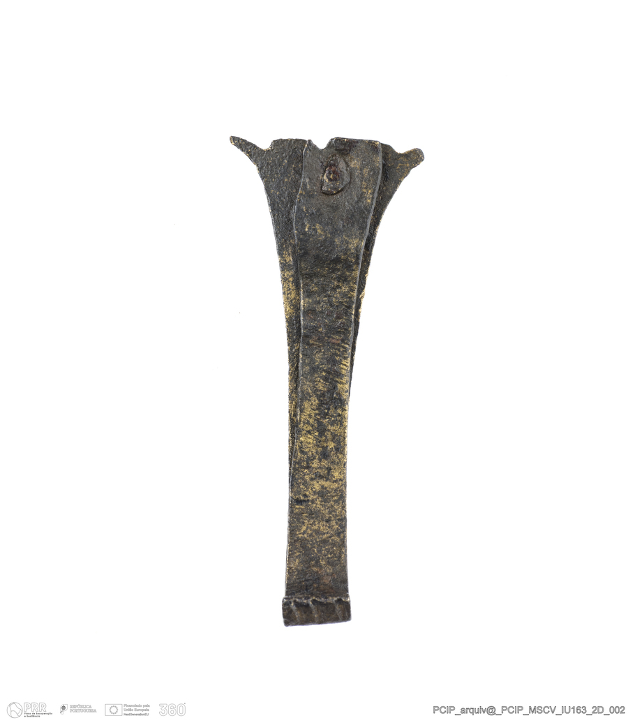 Matéria/Técnica: Liga de cobre; Cronologia: Século XVII; Autoria: Desconhecida; Dimensões: Altura: 49mm; Largura: 19,5mm; Espessura: 3mm.