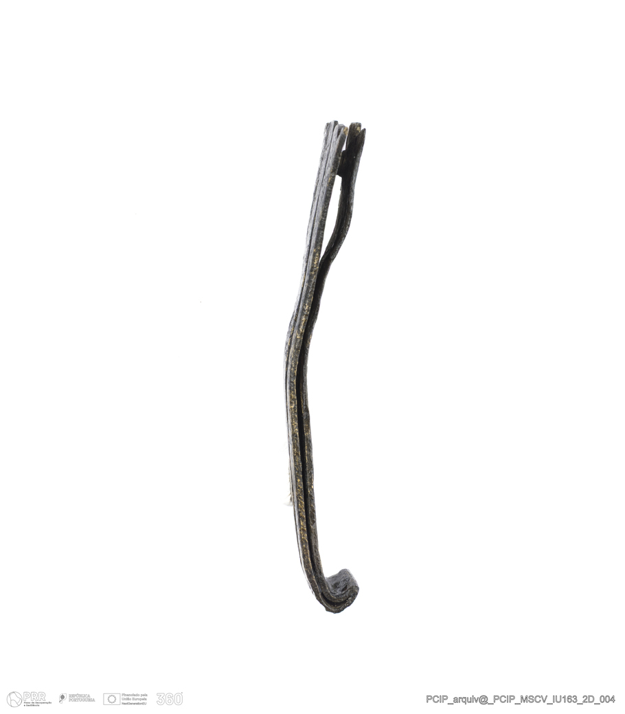 Matéria/Técnica: Liga de cobre; Cronologia: Século XVII; Autoria: Desconhecida; Dimensões: Altura: 49mm; Largura: 19,5mm; Espessura: 3mm.