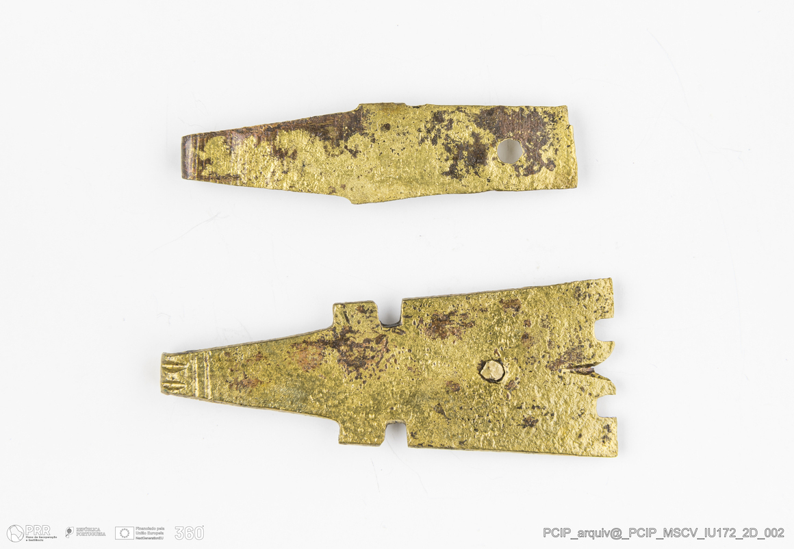 Matéria/Técnica: Metal; Cronologia: Século XVII; Autoria: Desconhecida; Dimensões: Comprimento: 41mm; Largura: 16mm; Espessura: 4mm.