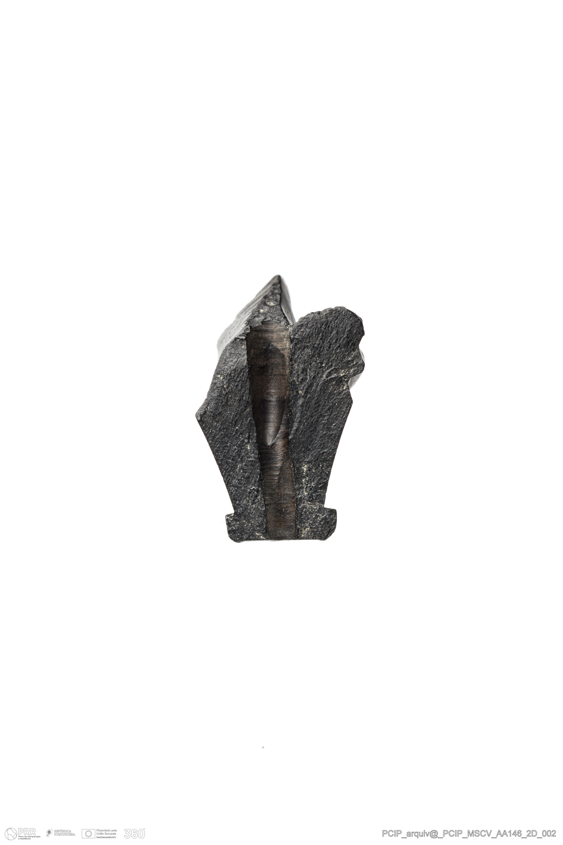 Matéria/Técnica: Azeviche; Cronologia: Século XVI- XVII; Autoria: Desconhecida; Dimensões: Comprimento: 13mm; Largura: 7mm; Espessura: 5mm.