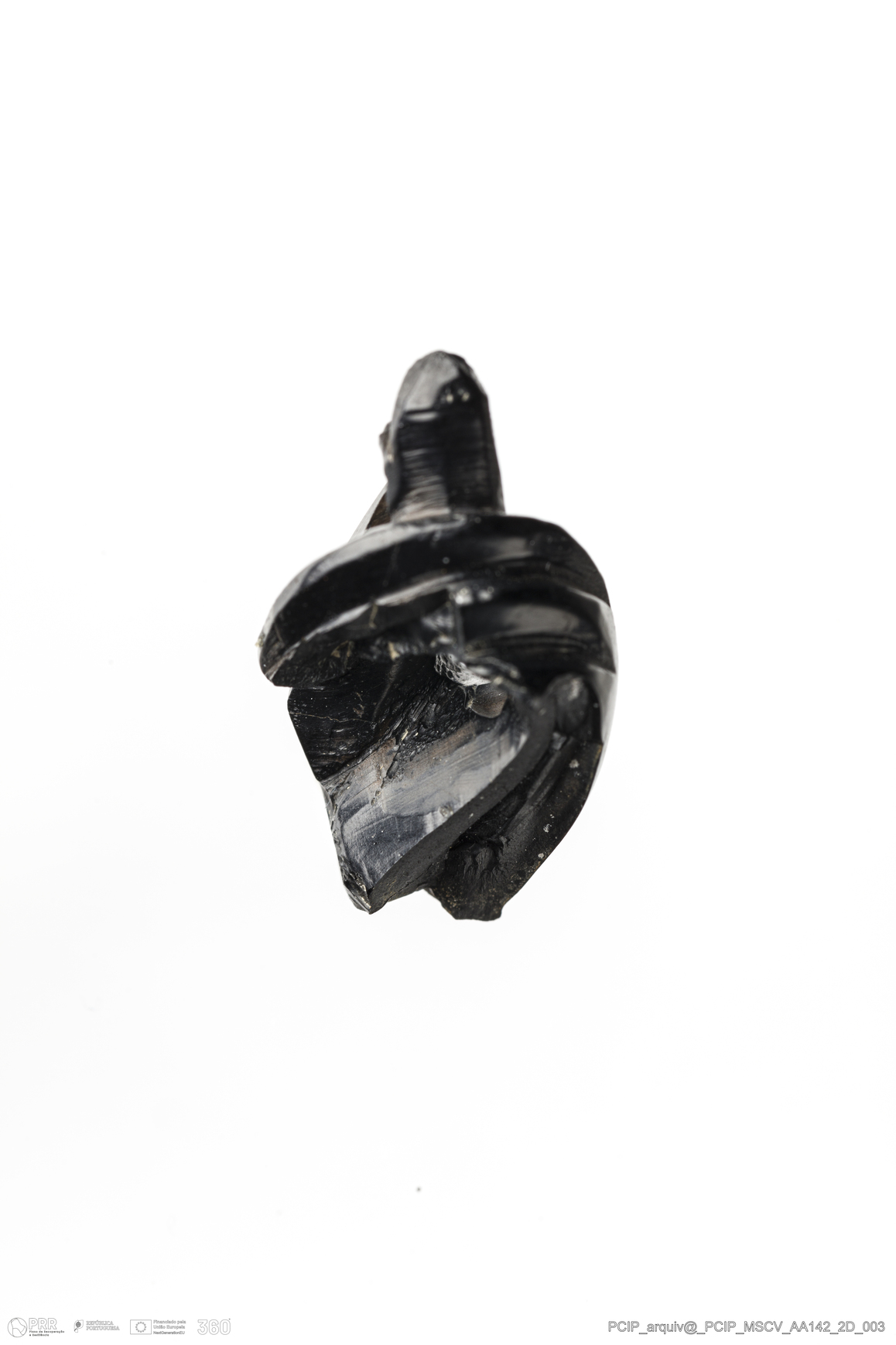 Matéria/Técnica: Azeviche; Cronologia: Século XVI-XVII; Autoria: Desconhecida; Dimensões: Largura: 13mm Altura / Espessura: 15mm Comprimento / Profundidade: 26mm.