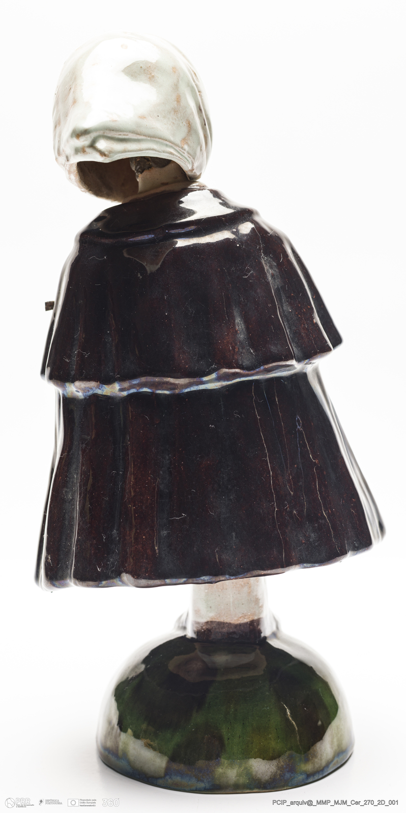 Matéria/Técnica: Barro vidrado; Cronologia: 1904; Autoria: Marca: FFCR; Dimensões: Comprimento: 11,9 x Altura: 24 x Largura: 11,6 cm.