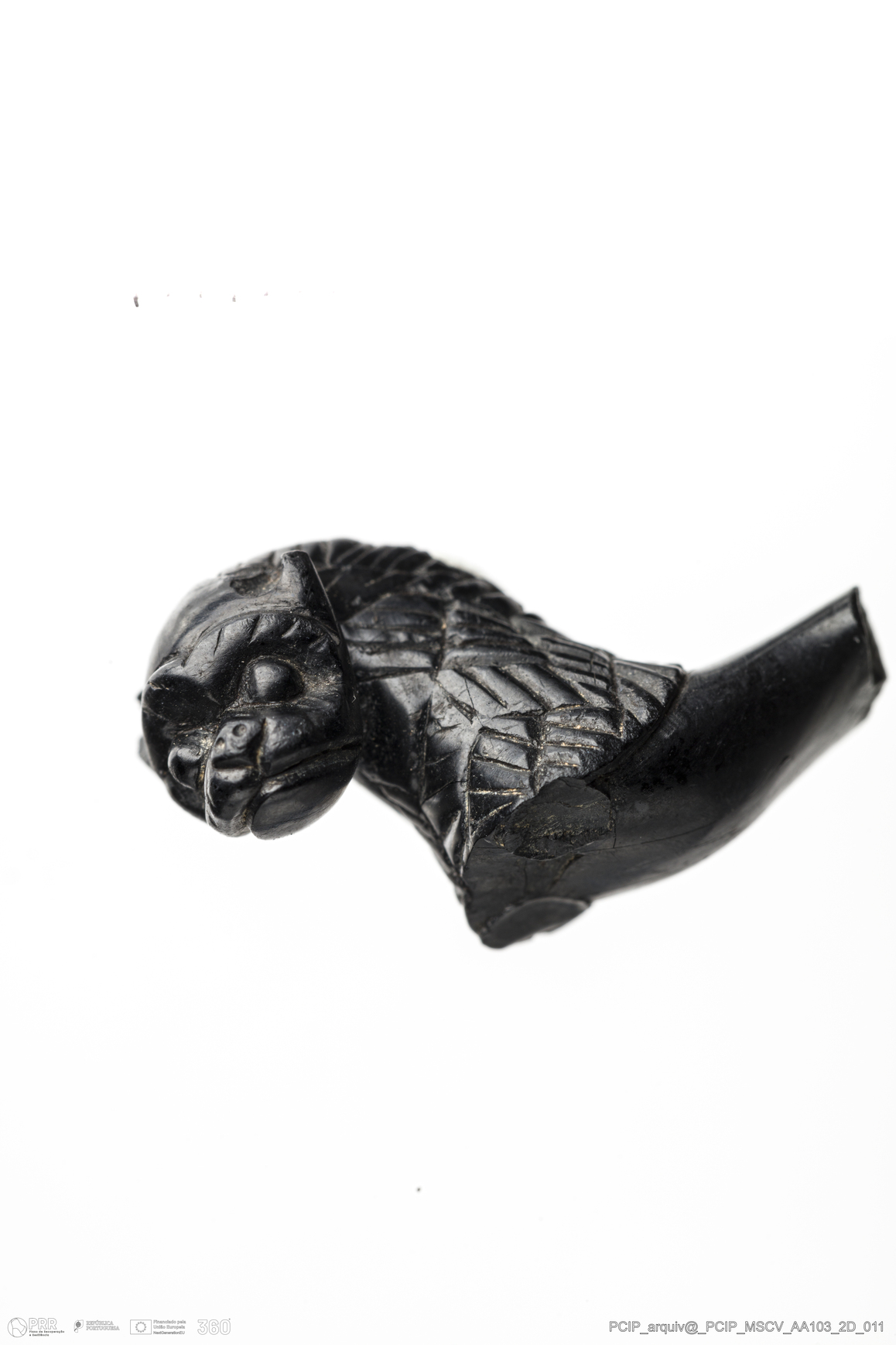 Matéria/Técnica: Azeviche; Cronologia: Século XVI-XVII; Autoria: Desconhecida; Dimensões: Largura: 22mm Altura / Espessura: 10mm Comprimento / Profundidade: 15mm.
