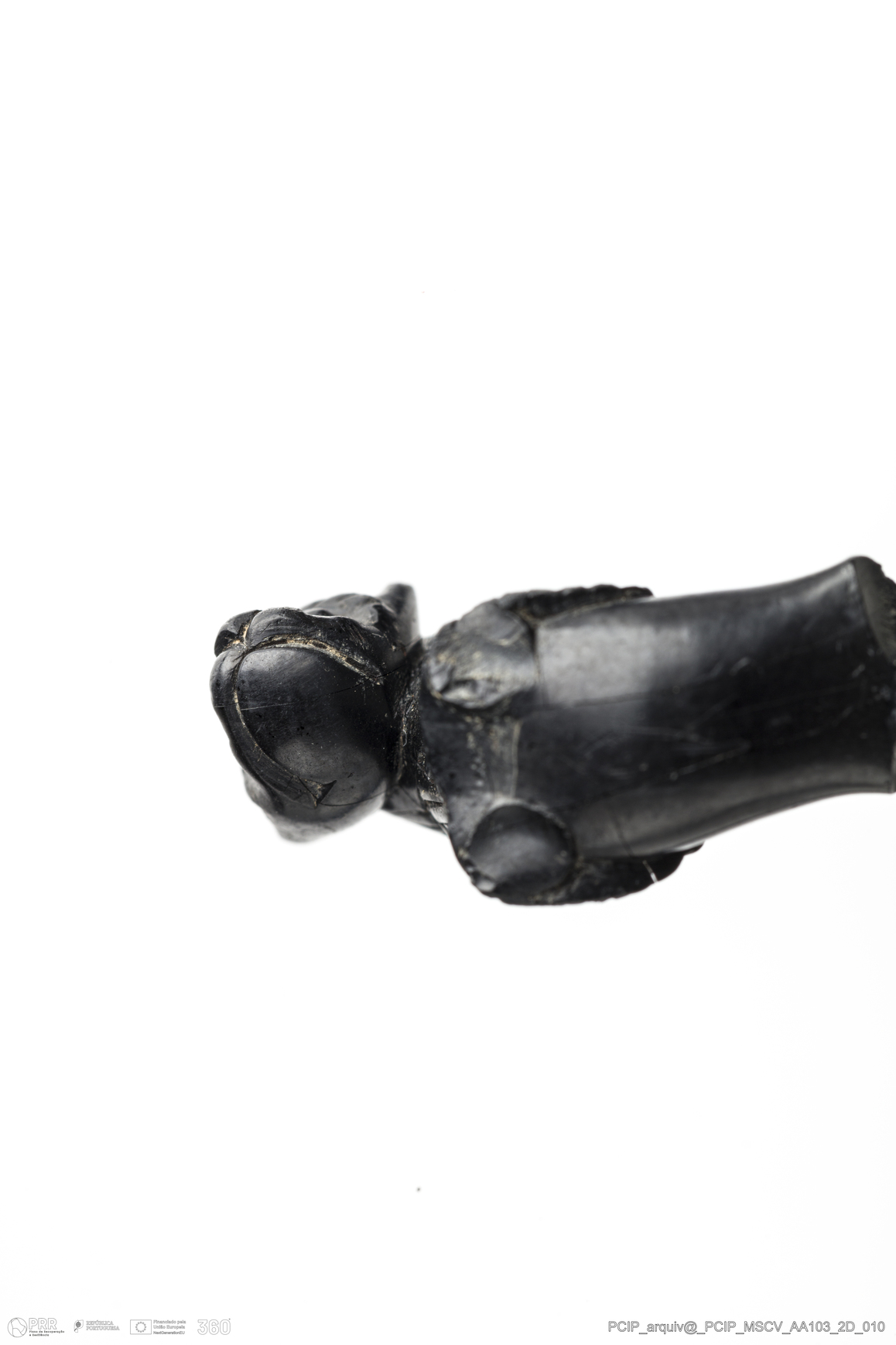 Matéria/Técnica: Azeviche; Cronologia: Século XVI-XVII; Autoria: Desconhecida; Dimensões: Largura: 22mm Altura / Espessura: 10mm Comprimento / Profundidade: 15mm.