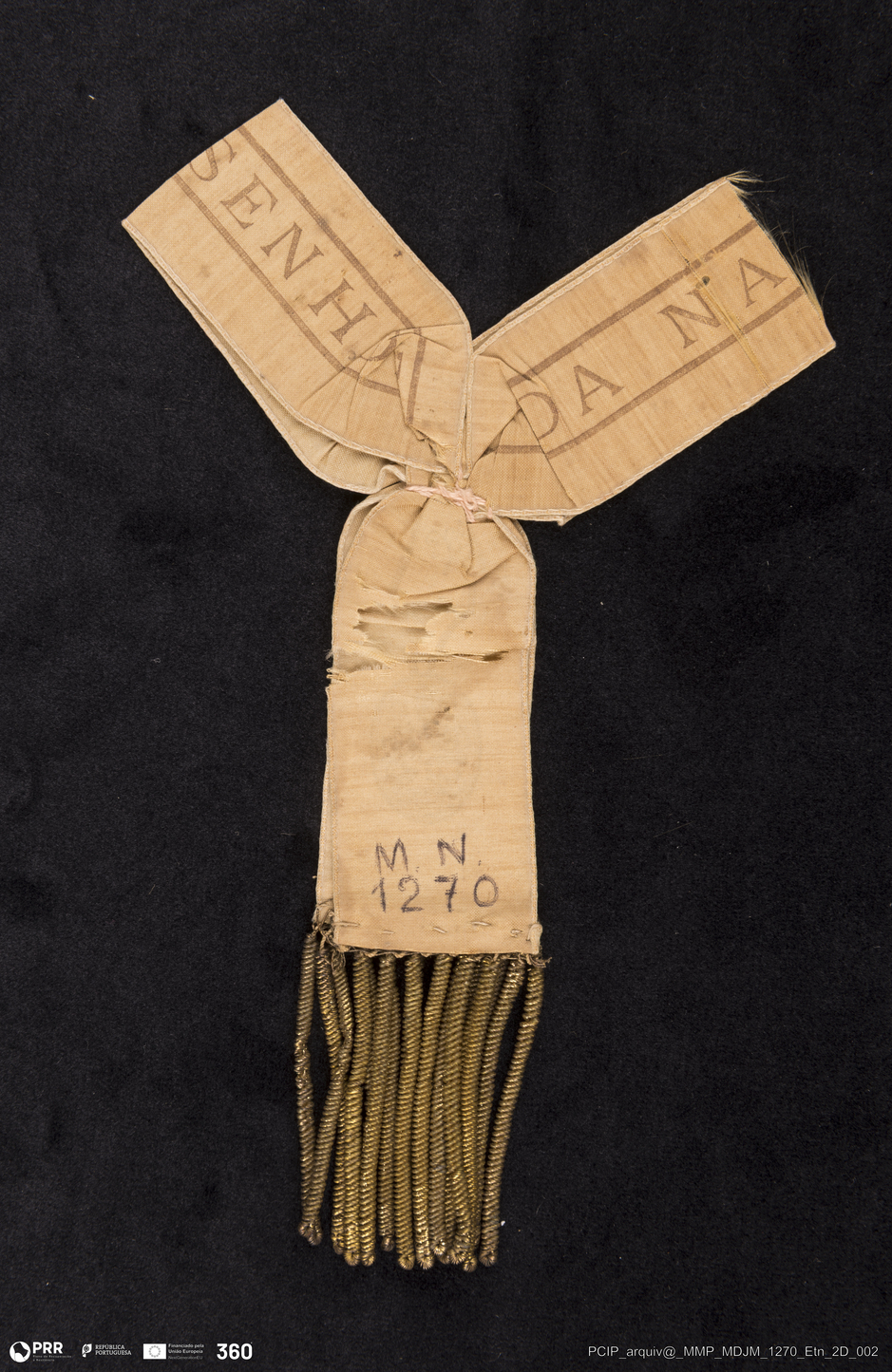 Matéria/Técnica: Seda; Cronologia: Séc. XVIII; Autoria: Desconhecida; Dimensões: Comprimento: 37,1 cm x Largura: 2,5 cm.