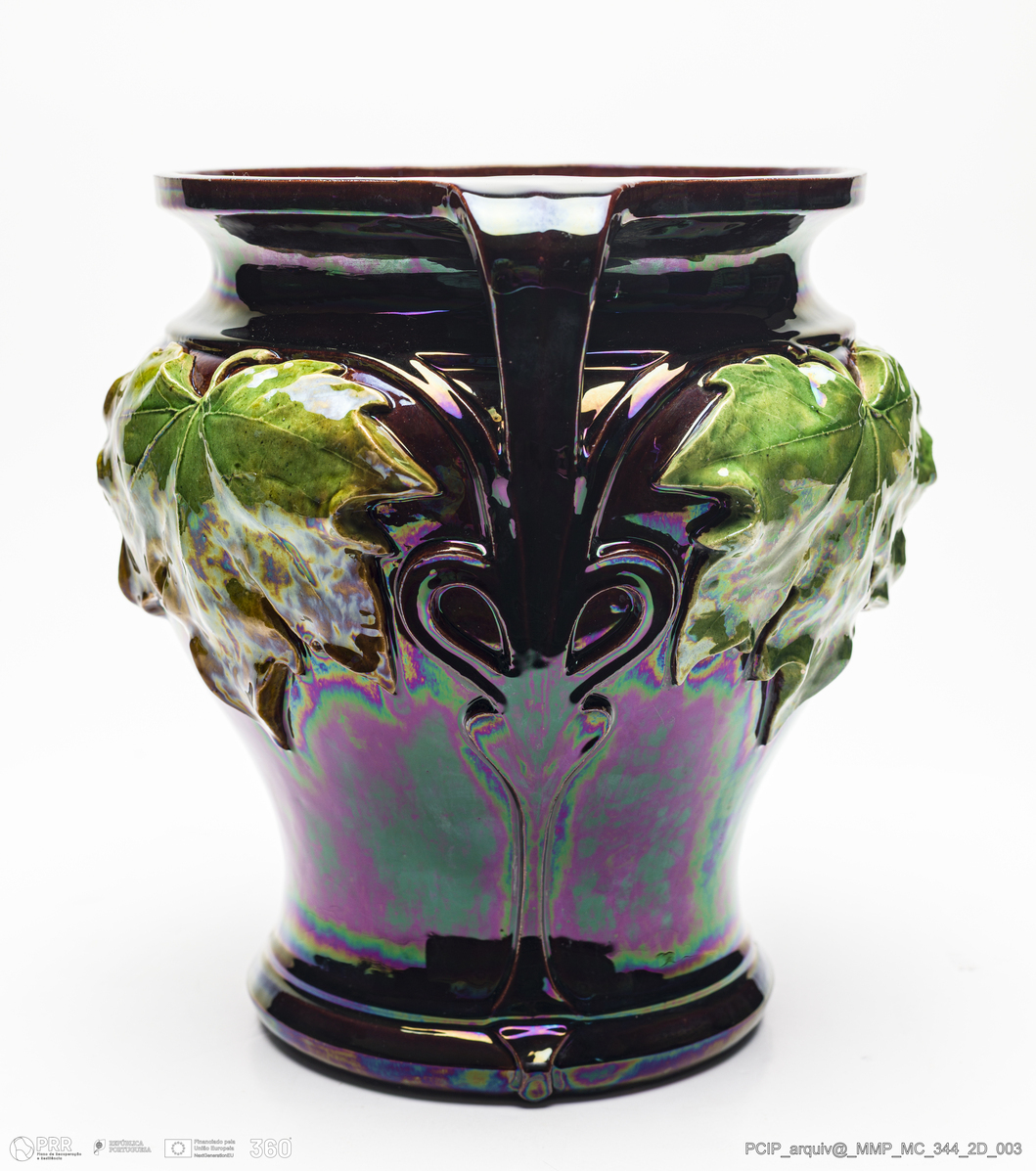 Matéria/Técnica: Barro vermelho rodado e moldado. Vidrado polícromo: castanho escuro e verde; Cronologia: 1905-1922; Autoria: Manuel Gustavo Bordalo Pinheiro / Fábrica Bordalo Pinheiro, Caldas da Rainha, Portugal; Dimensões (cm): Altura: 24; Largura: 29; Comprimento: 25.