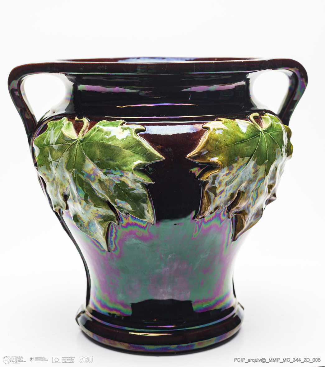 Matéria/Técnica: Barro vermelho rodado e moldado. Vidrado polícromo: castanho escuro e verde; Cronologia: 1905-1922; Autoria: Manuel Gustavo Bordalo Pinheiro / Fábrica Bordalo Pinheiro, Caldas da Rainha, Portugal; Dimensões (cm): Altura: 24; Largura: 29; Comprimento: 25.