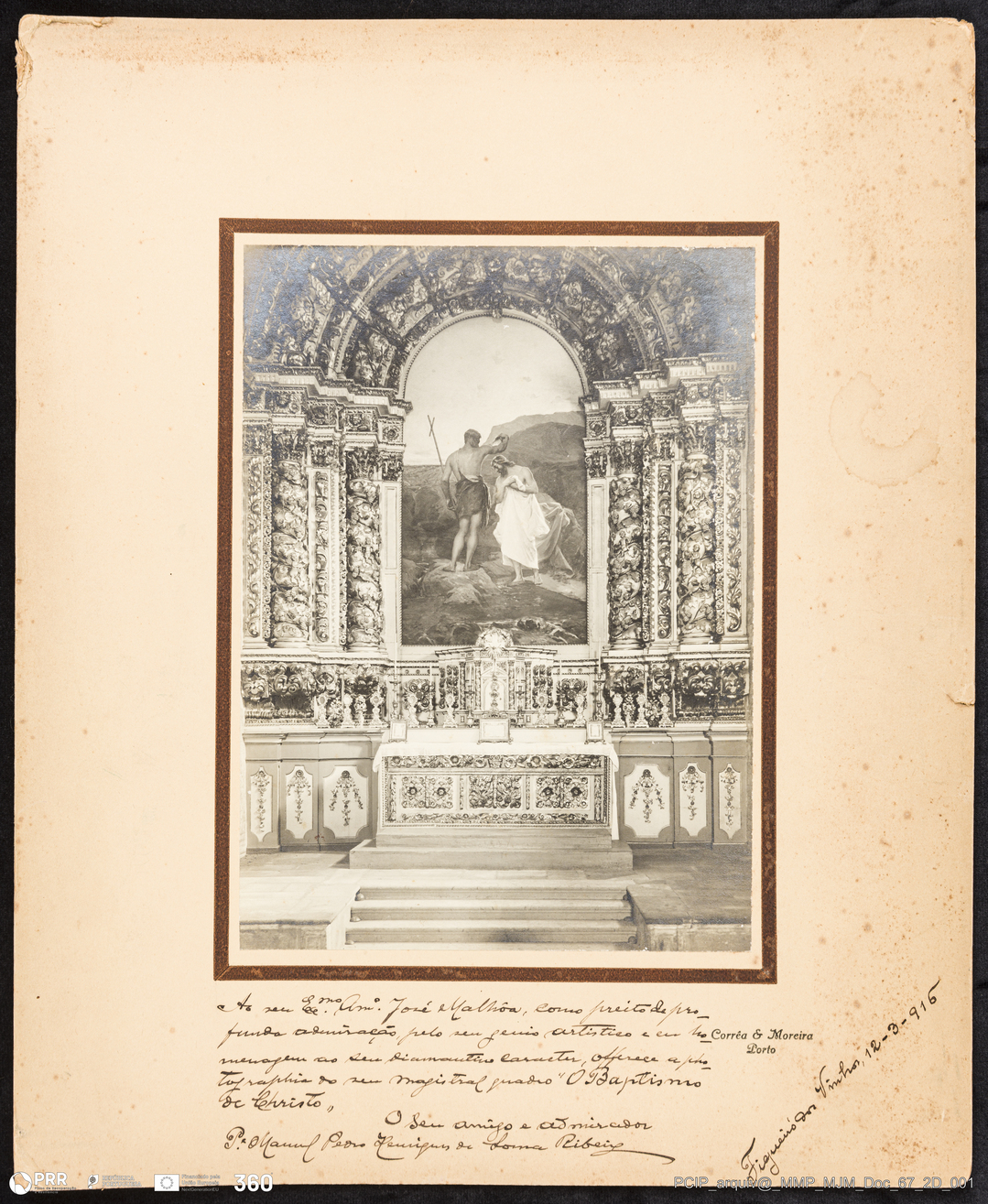 Documento simples. MJM_Doc_67_2D_001 - Fotografia dedicada do quadro de Malhoa "O Baptismo de Christo"