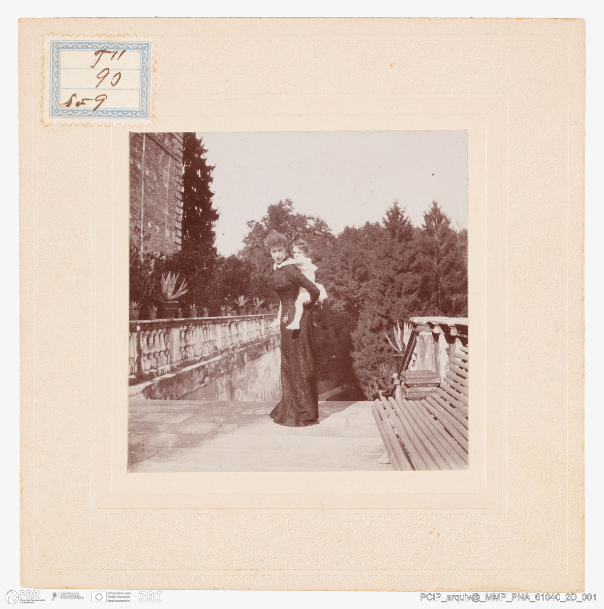Documento simples. PNA_61040_2D_001 - Fotografia - Retrato - Viagens Reais – Itália – Jardim - Princesa Helena de França, Duquesa de Aosta