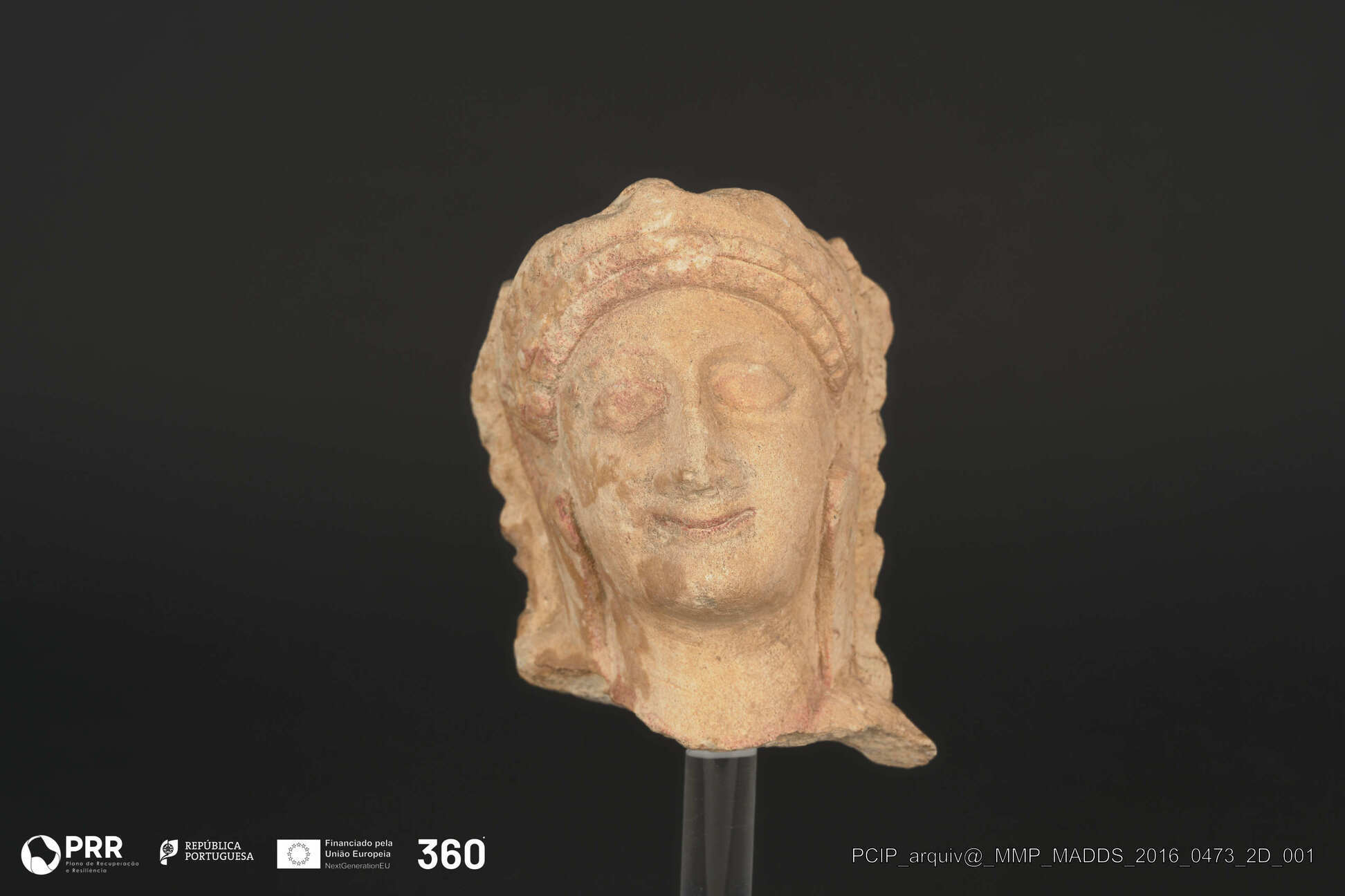 Matéria/Técnica: Calcário; Cronologia: Finais do século VI - Inícios do século V a.C; Autoria: Desconhecida; Dimensões (cm): 8 x 7 x 6.