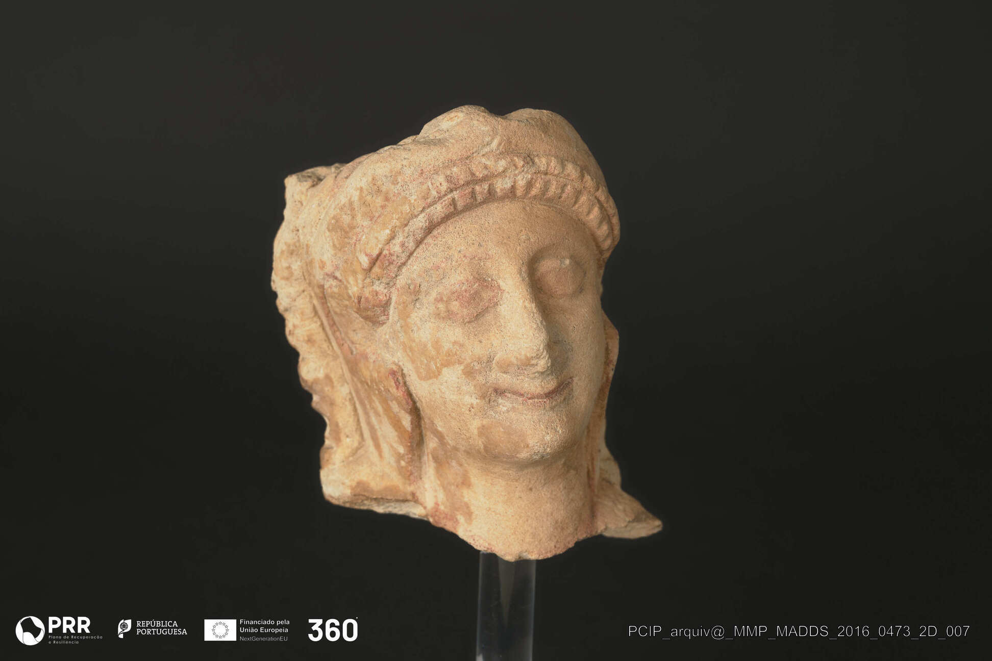 Matéria/Técnica: Calcário; Cronologia: Finais do século VI - Inícios do século V a.C; Autoria: Desconhecida; Dimensões (cm): 8 x 7 x 6.