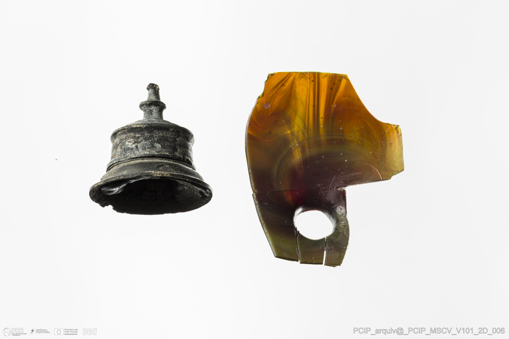 Matéria/Técnica: Vidro; Cronologia: Século XVII; Autoria: Desconhecida; Dimensões: Diâmetro do bordo: 10mm; Altura tampa: 26mm.