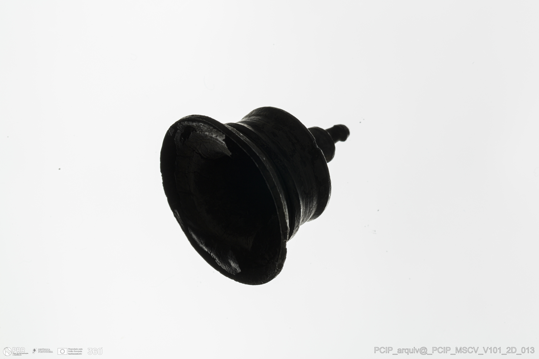 Matéria/Técnica: Vidro; Cronologia: Século XVII; Autoria: Desconhecida; Dimensões: Diâmetro do bordo: 10mm; Altura tampa: 26mm.