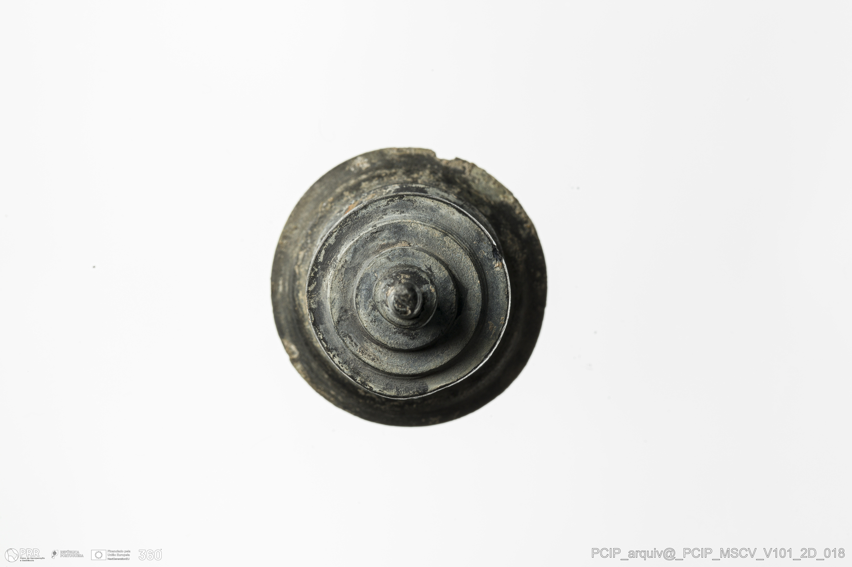 Matéria/Técnica: Vidro; Cronologia: Século XVII; Autoria: Desconhecida; Dimensões: Diâmetro do bordo: 10mm; Altura tampa: 26mm.