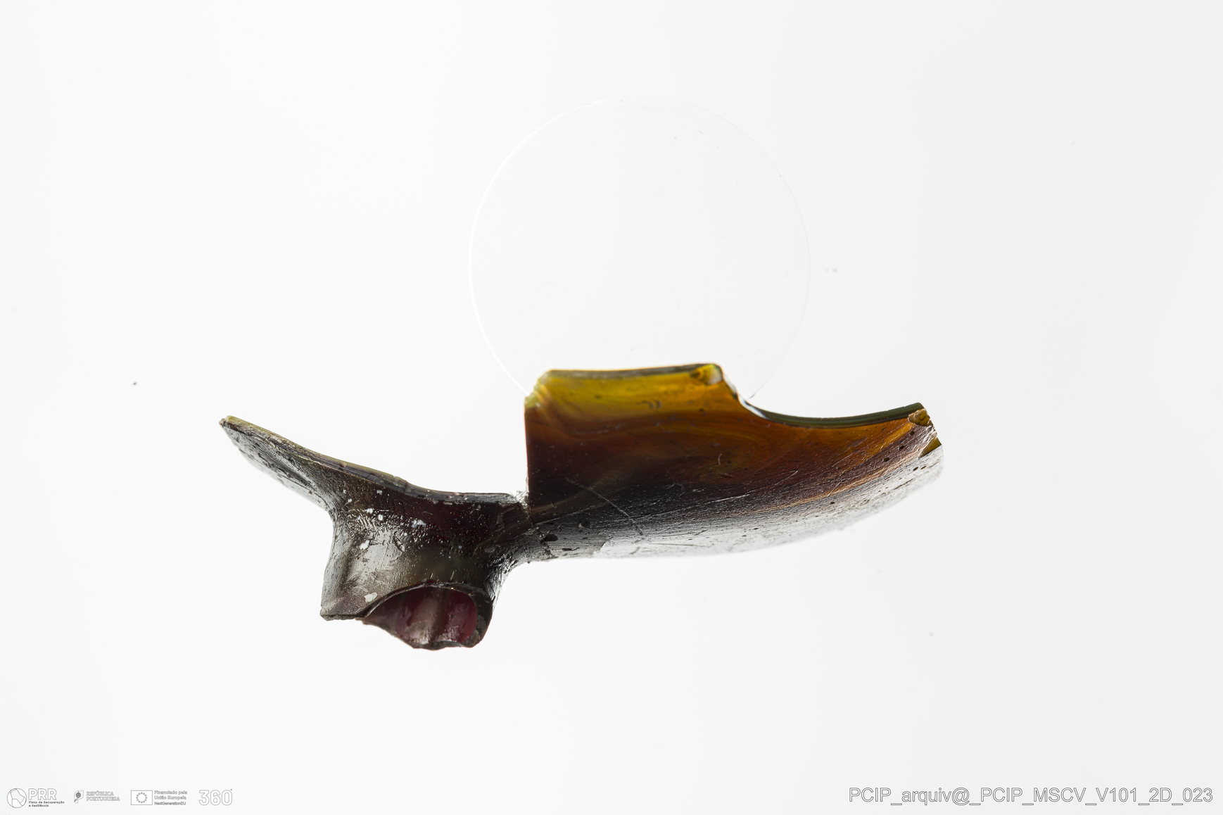 Matéria/Técnica: Vidro; Cronologia: Século XVII; Autoria: Desconhecida; Dimensões: Diâmetro do bordo: 10mm; Altura tampa: 26mm.