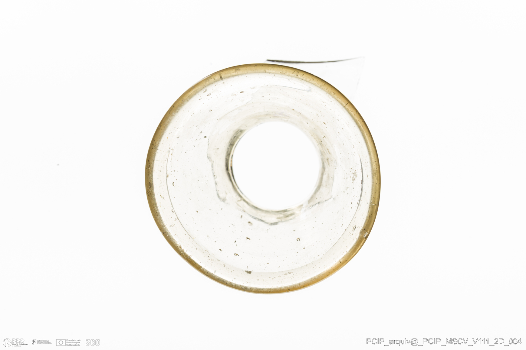 Matéria/Técnica: Vidro; Cronologia: Século XVII; Autoria: Desconhecida; Dimensões: Diâmetro bordo: 32mm.
