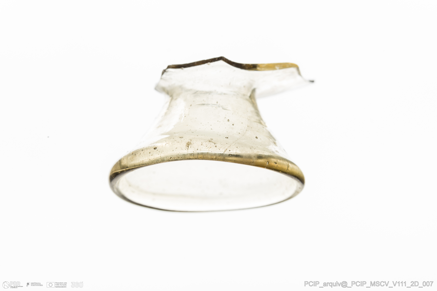 Matéria/Técnica: Vidro; Cronologia: Século XVII; Autoria: Desconhecida; Dimensões: Diâmetro bordo: 32mm.