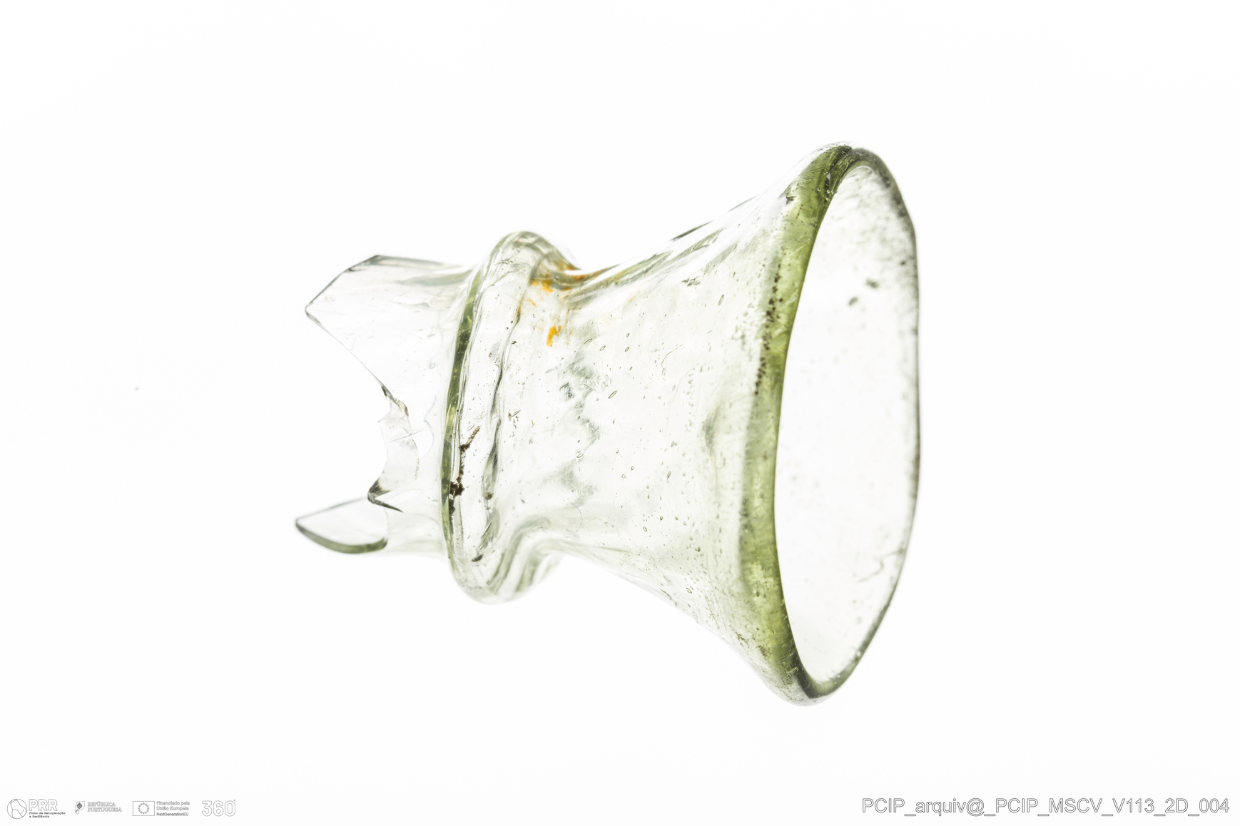 Matéria/Técnica: Vidro; Cronologia: Século XVII; Autoria: Desconhecida; Dimensões: Diâmetro bordo: 38mm.
