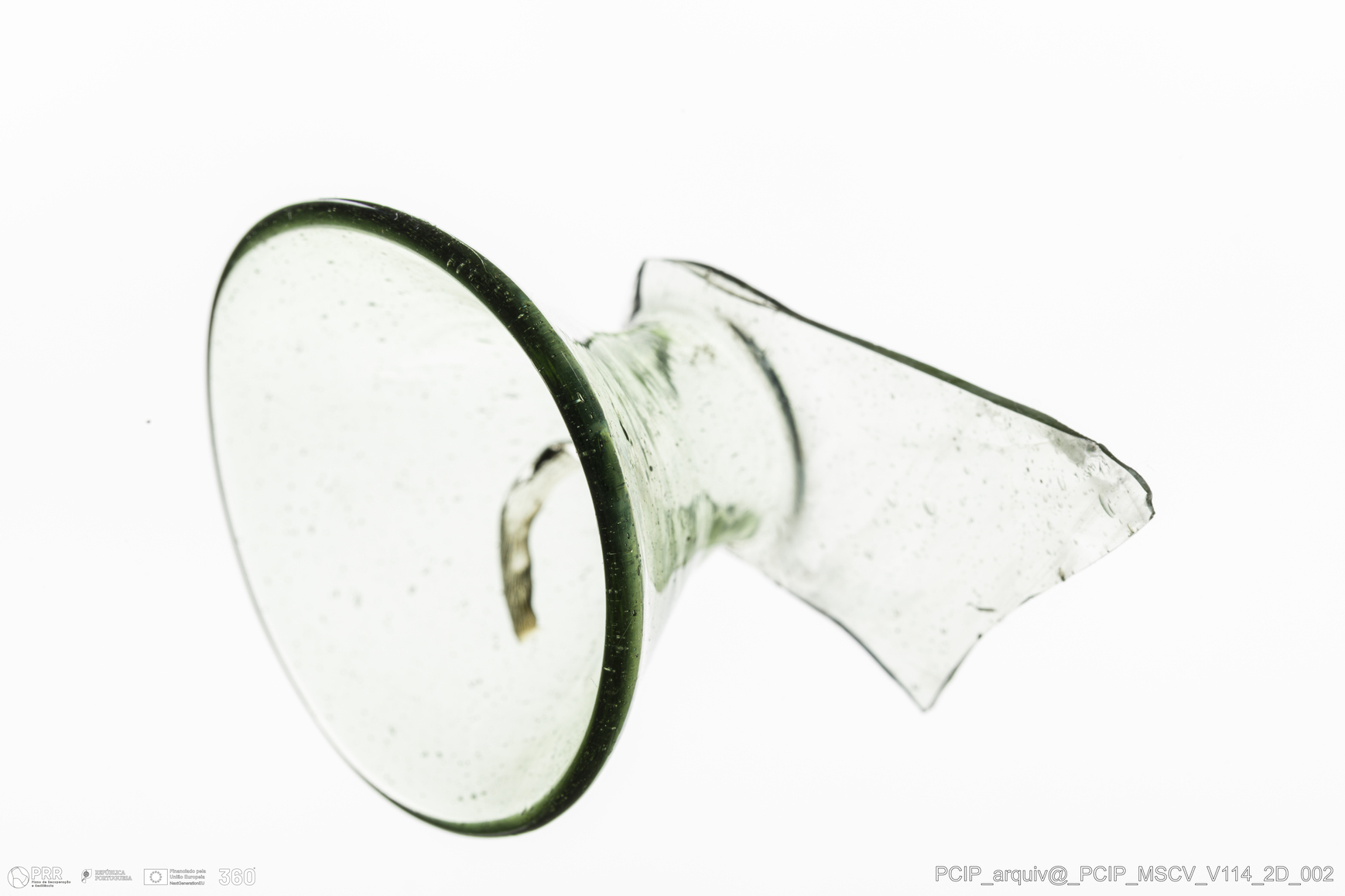 Matéria/Técnica: Vidro; Cronologia: Século XVII; Autoria: Desconhecida; Dimensões: Diâmetro bordo: 41mm.