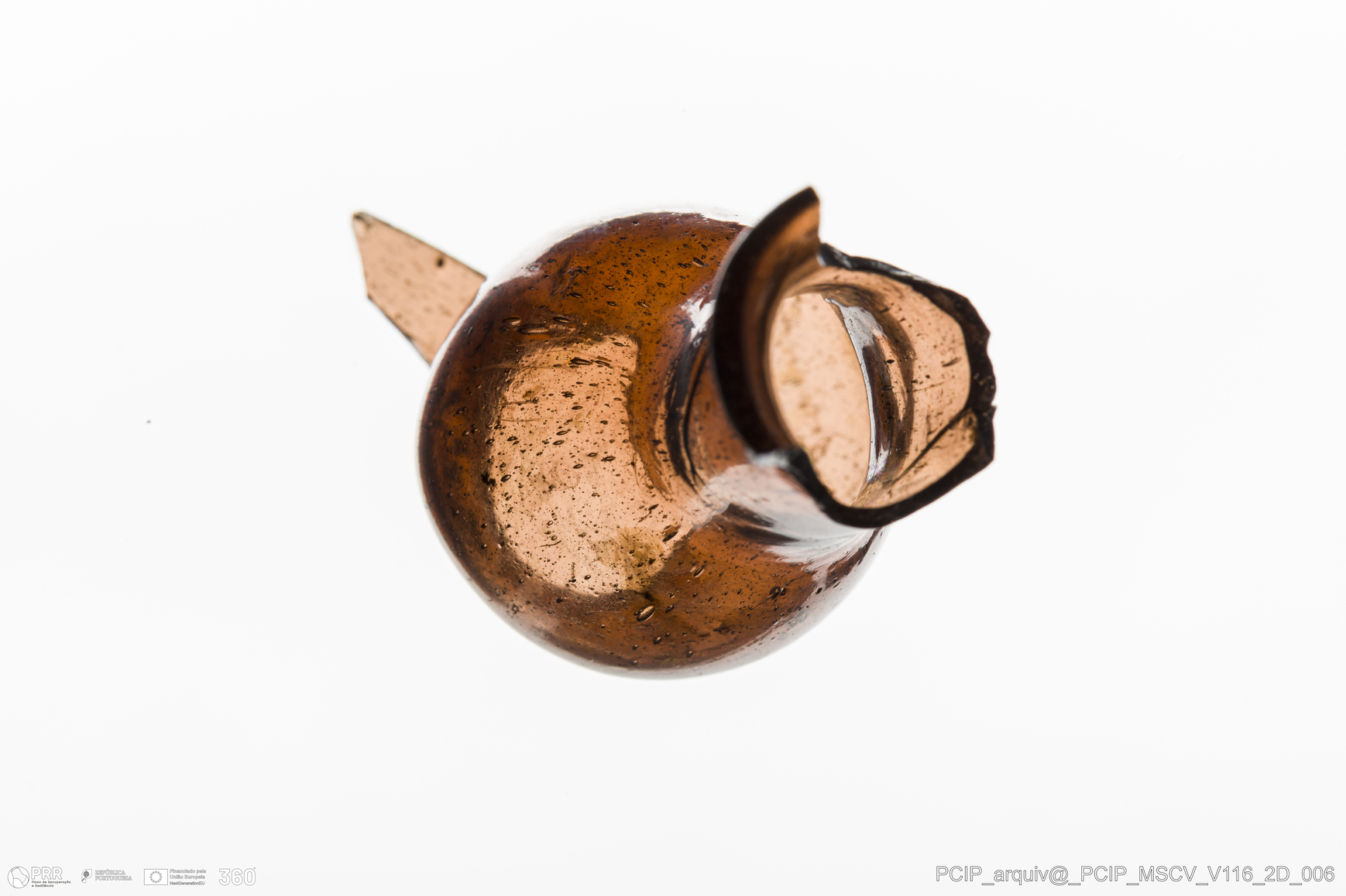 Matéria/Técnica: Vidro; Cronologia: Século XVII; Autoria: Desconhecida; Dimensões: Diâmetro bordo: 20mm.