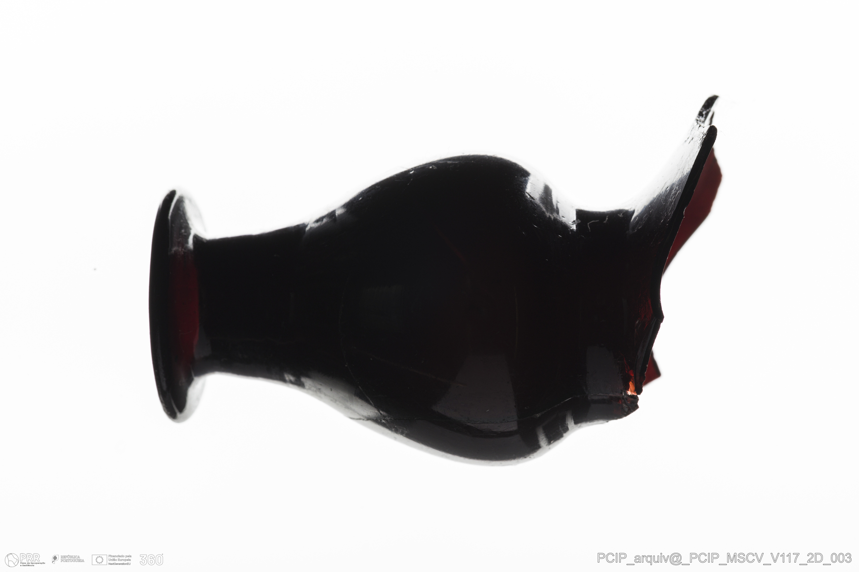 Matéria/Técnica: Vidro; Cronologia: Século XVII; Autoria: Desconhecida; Dimensões: Diâmetro bordo: 23mm.
