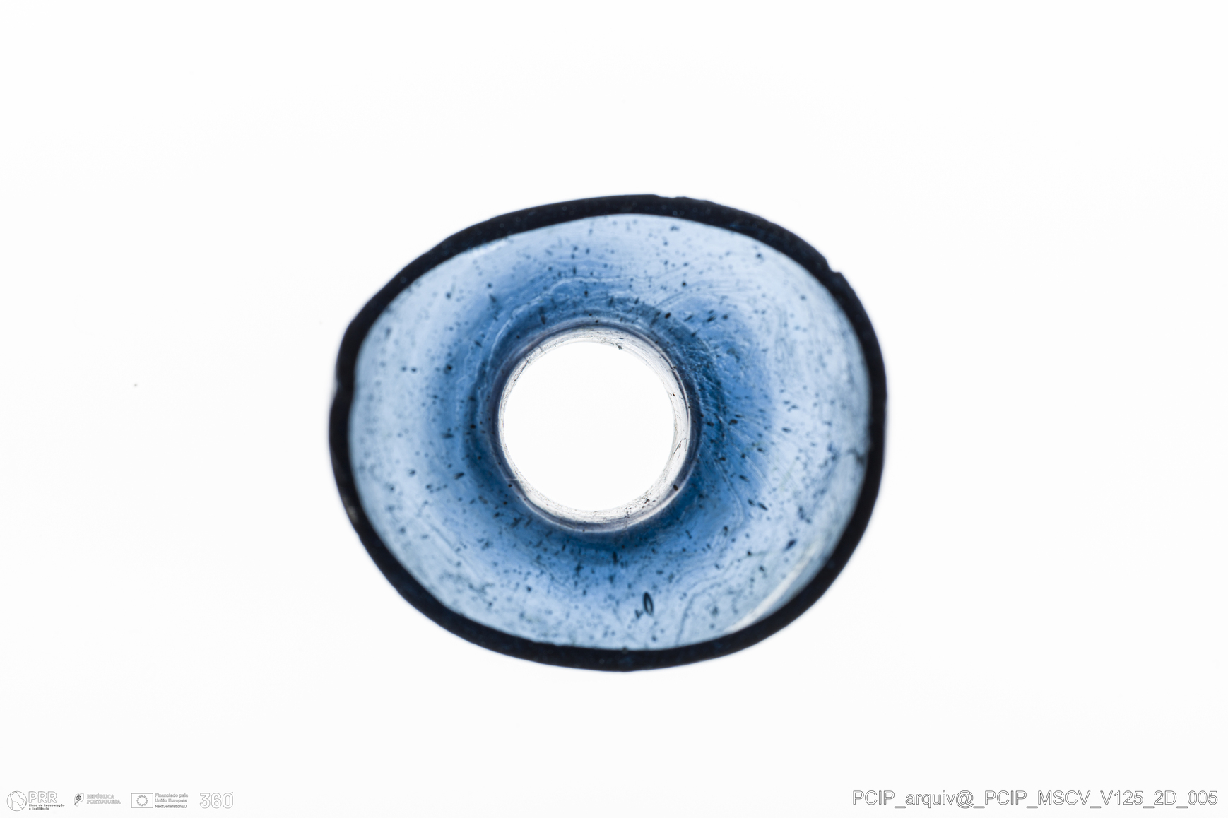 Matéria/Técnica: Vidro; Cronologia: Século XVII; Autoria: Desconhecida; Dimensões: Diâmetro bordo: 23mm.