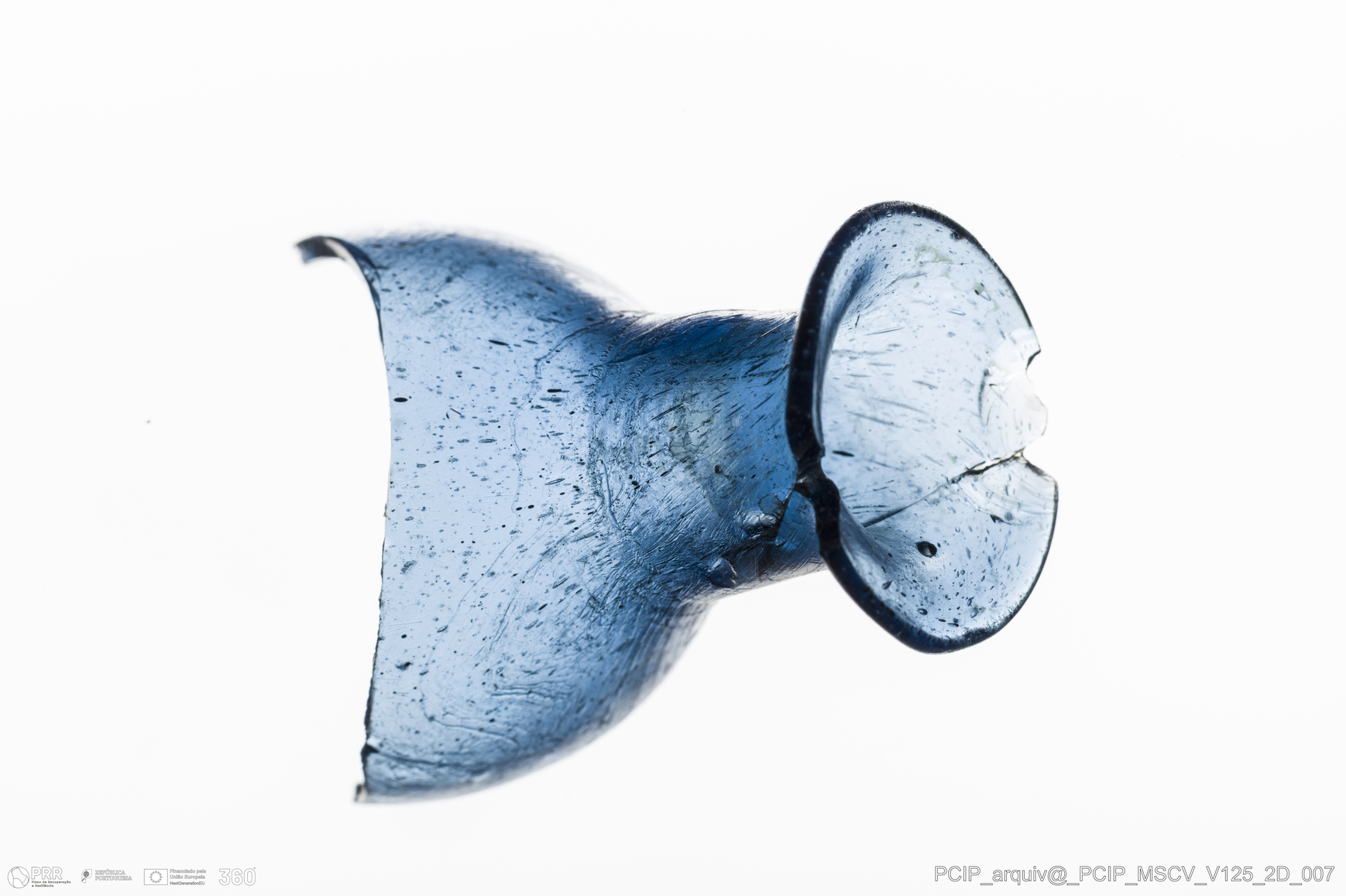 Matéria/Técnica: Vidro; Cronologia: Século XVII; Autoria: Desconhecida; Dimensões: Diâmetro bordo: 23mm.