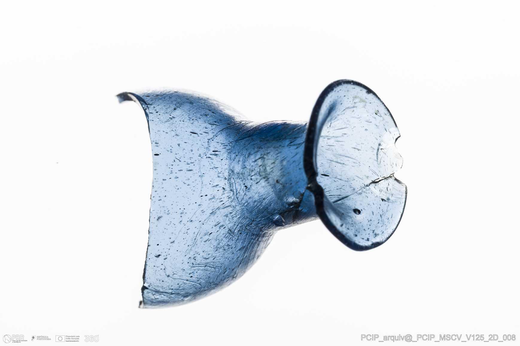 Matéria/Técnica: Vidro; Cronologia: Século XVII; Autoria: Desconhecida; Dimensões: Diâmetro bordo: 23mm.