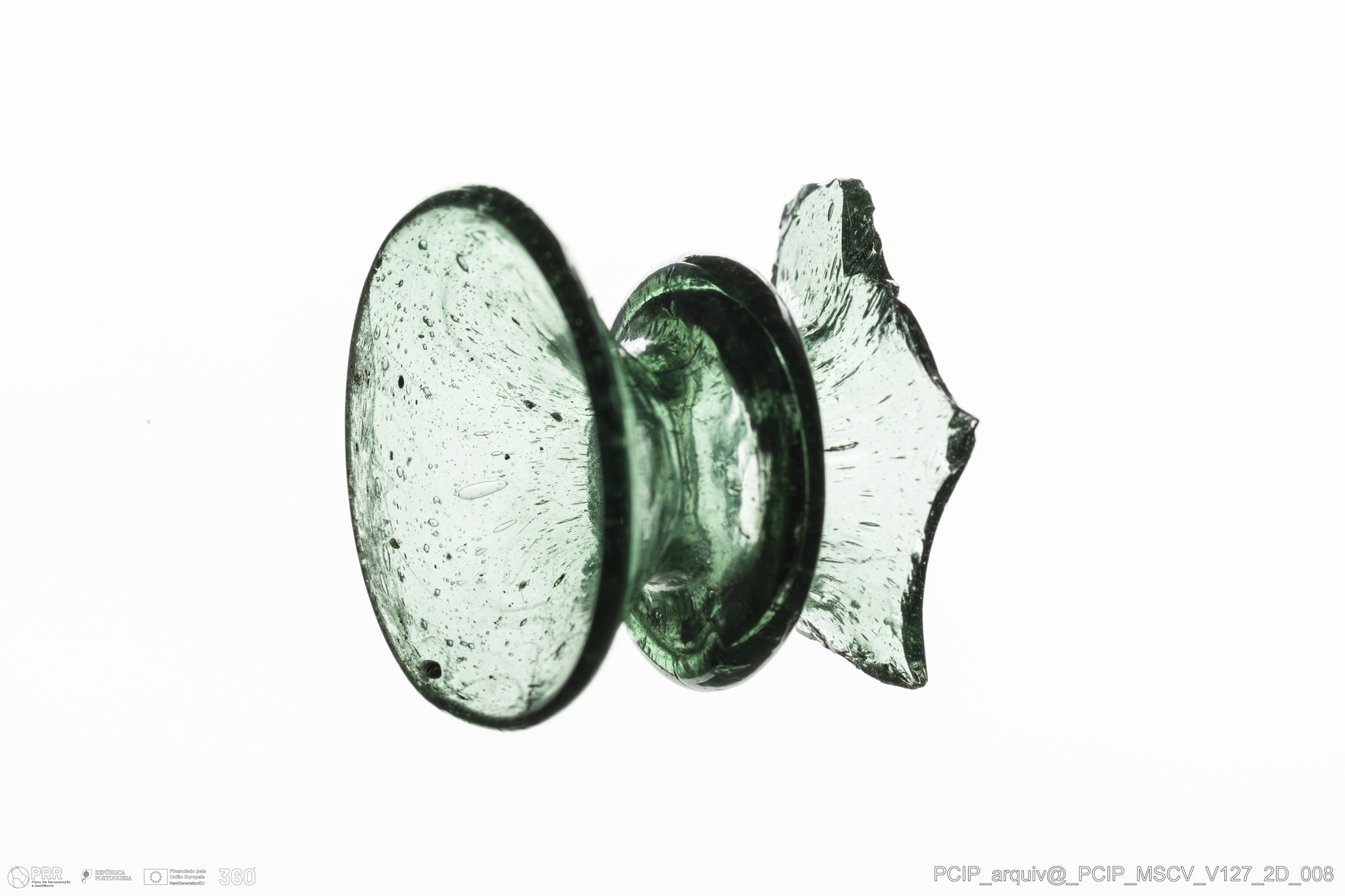 Matéria/Técnica: Vidro; Cronologia: Século XVII; Autoria: Desconhecida; Dimensões: Diâmetro bordo: 29mm.