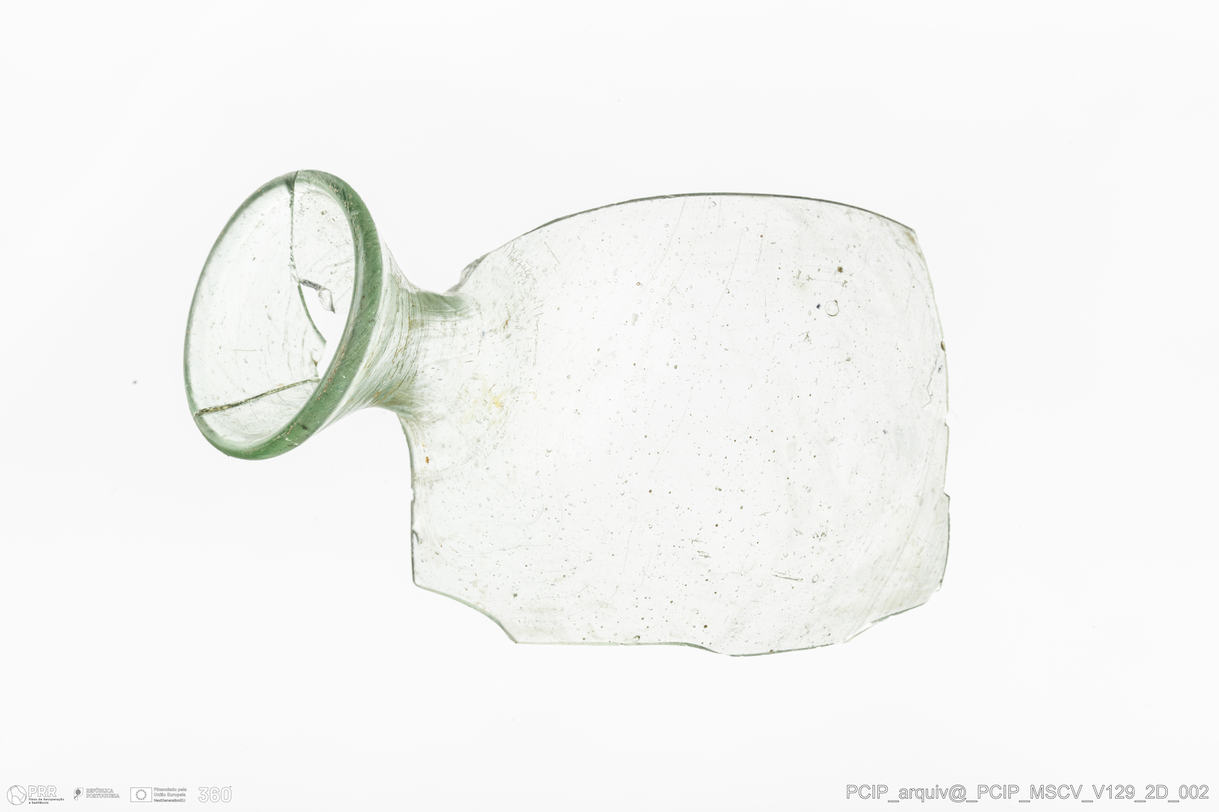 Matéria/Técnica: Vidro; Cronologia: Século XVII; Autoria: Desconhecida; Dimensões: Diâmetro bordo: 29mm.