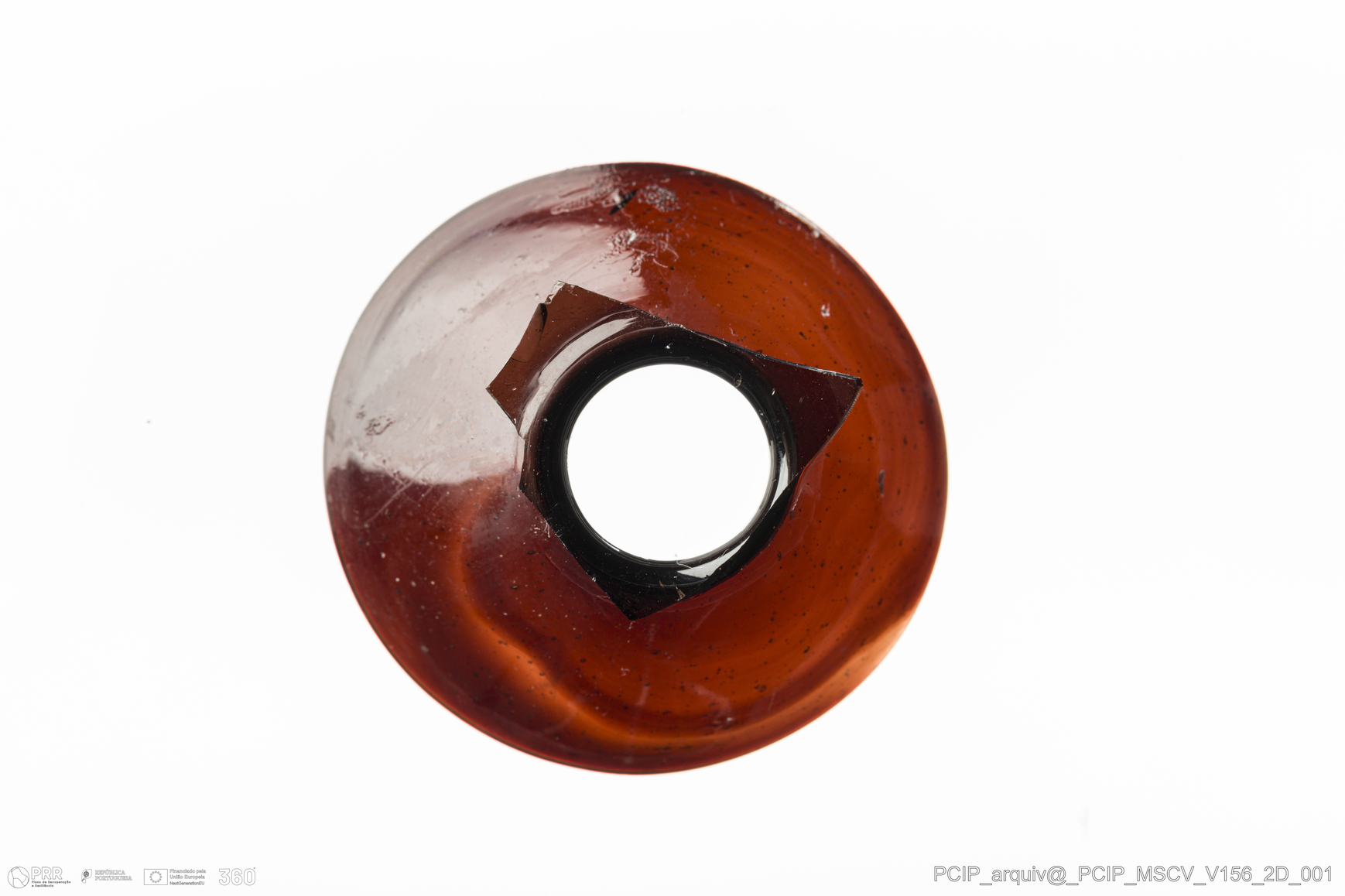 Matéria/Técnica: Vidro; Cronologia: Século XVII; Autoria: Desconhecida; Dimensões: Diâmetro bordo: 50mm.