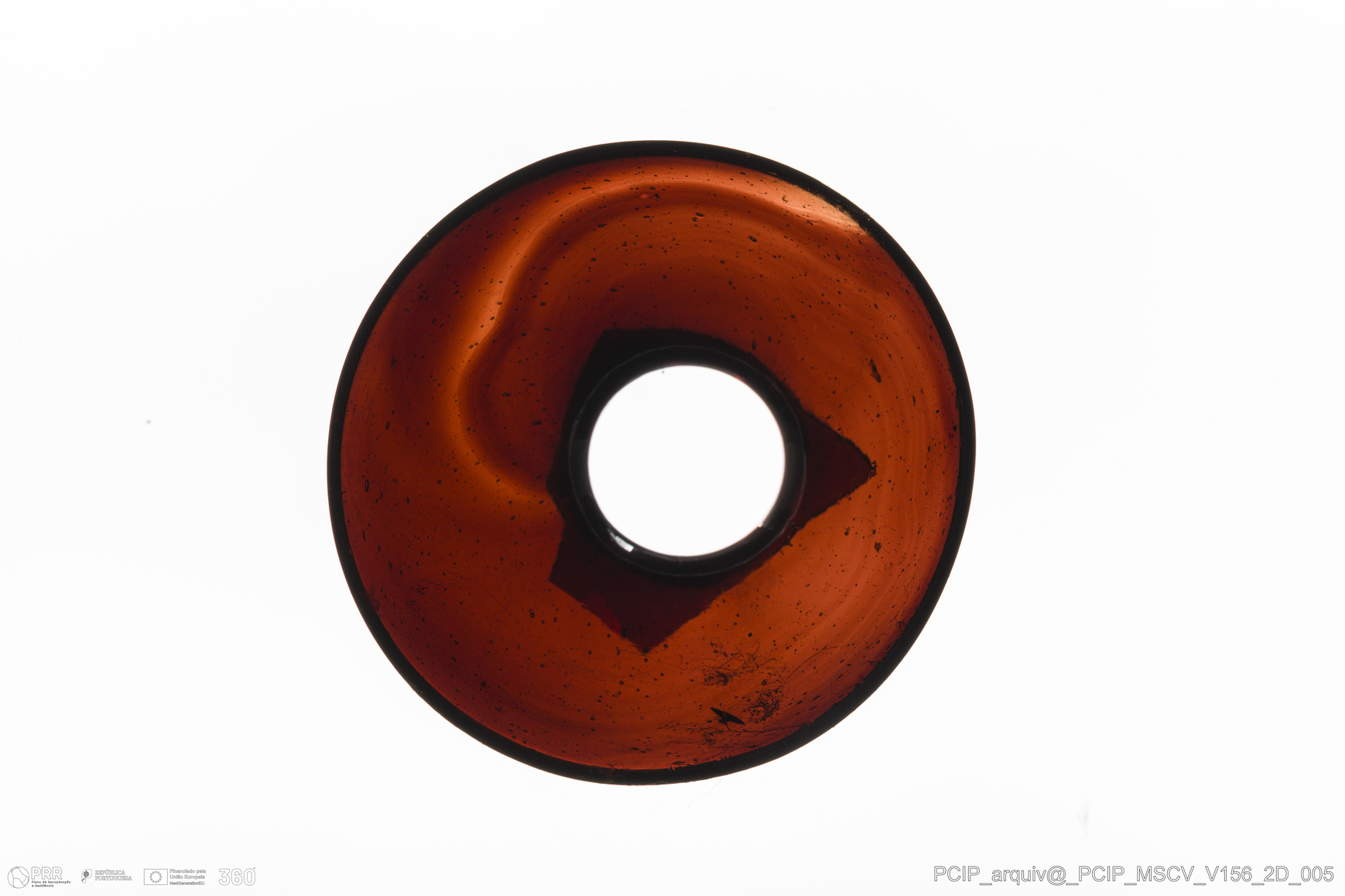 Matéria/Técnica: Vidro; Cronologia: Século XVII; Autoria: Desconhecida; Dimensões: Diâmetro bordo: 50mm.
