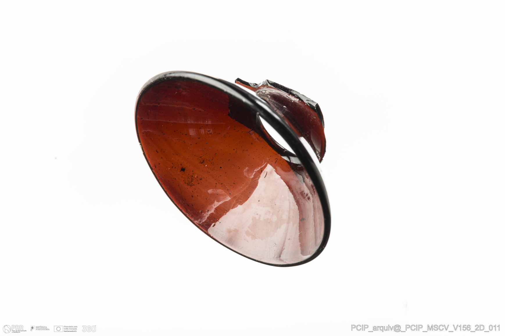 Matéria/Técnica: Vidro; Cronologia: Século XVII; Autoria: Desconhecida; Dimensões: Diâmetro bordo: 50mm.