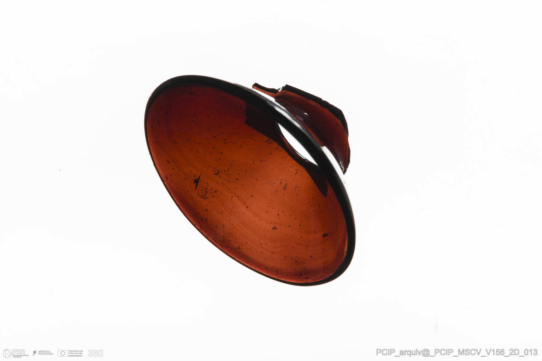 Matéria/Técnica: Vidro; Cronologia: Século XVII; Autoria: Desconhecida; Dimensões: Diâmetro bordo: 50mm.