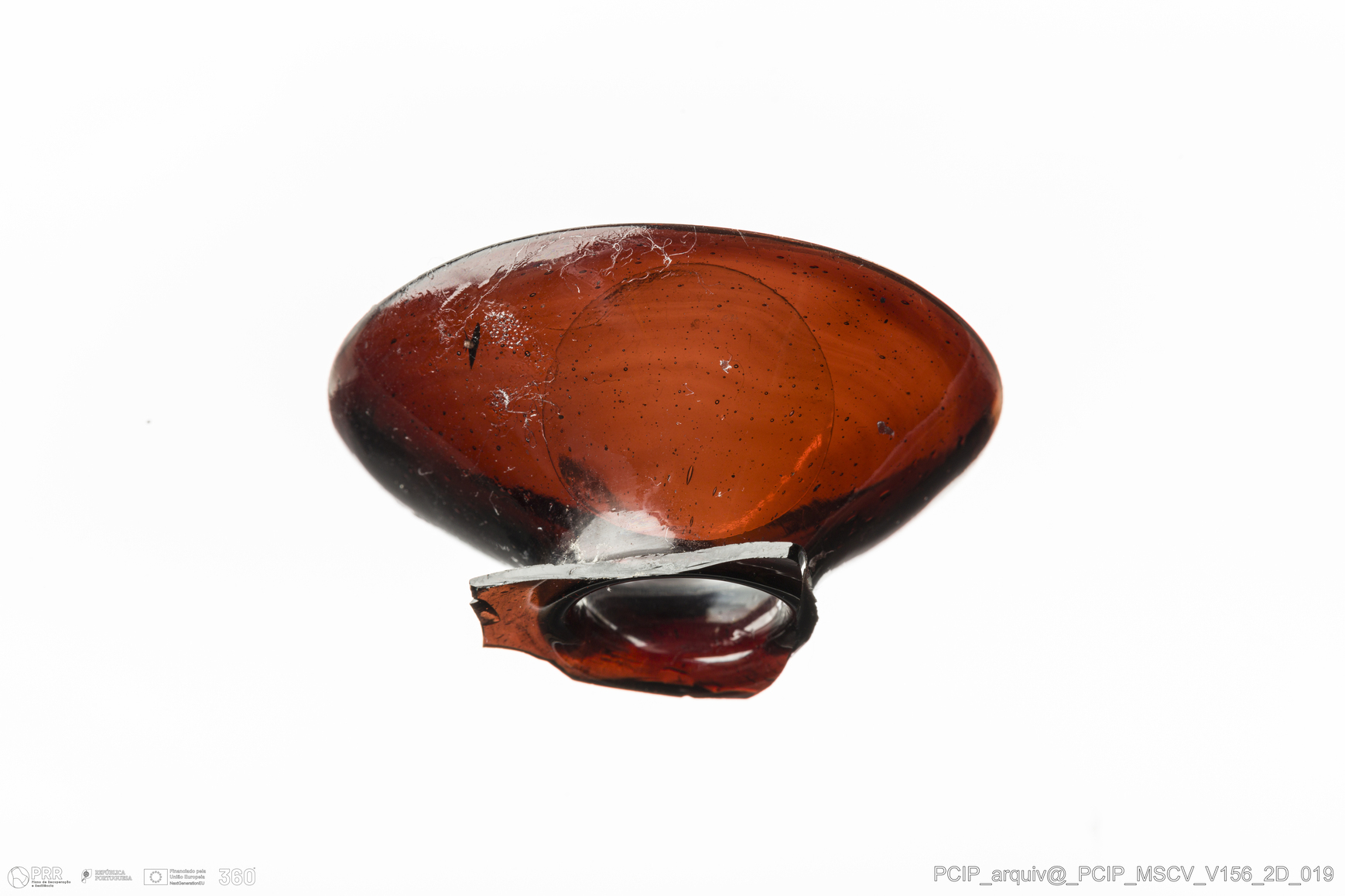 Matéria/Técnica: Vidro; Cronologia: Século XVII; Autoria: Desconhecida; Dimensões: Diâmetro bordo: 50mm.
