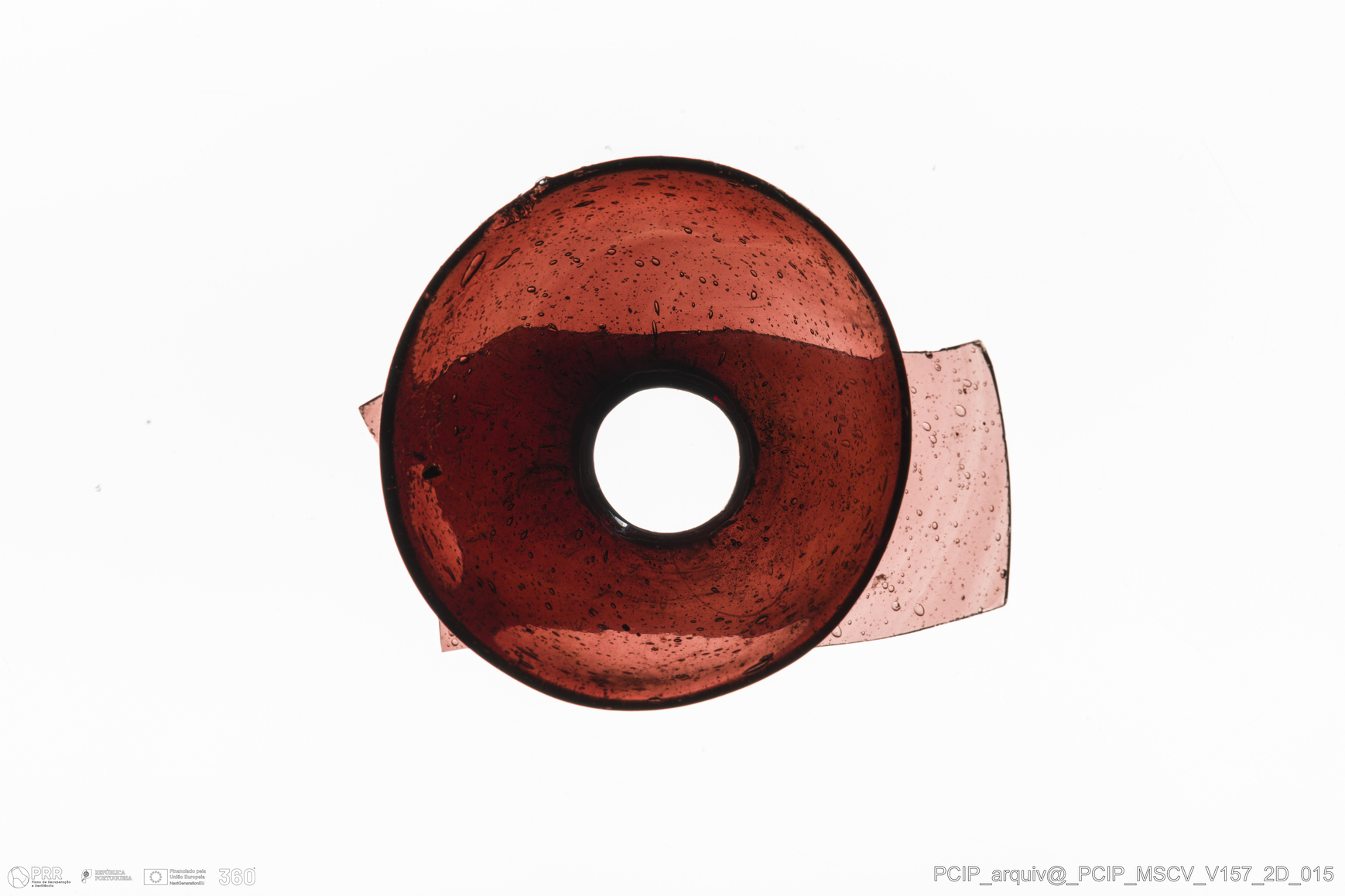 Matéria/Técnica: Vidro; Cronologia: Século XVII; Autoria: Desconhecida; Dimensões: Diâmetro do bordo: 33mm.