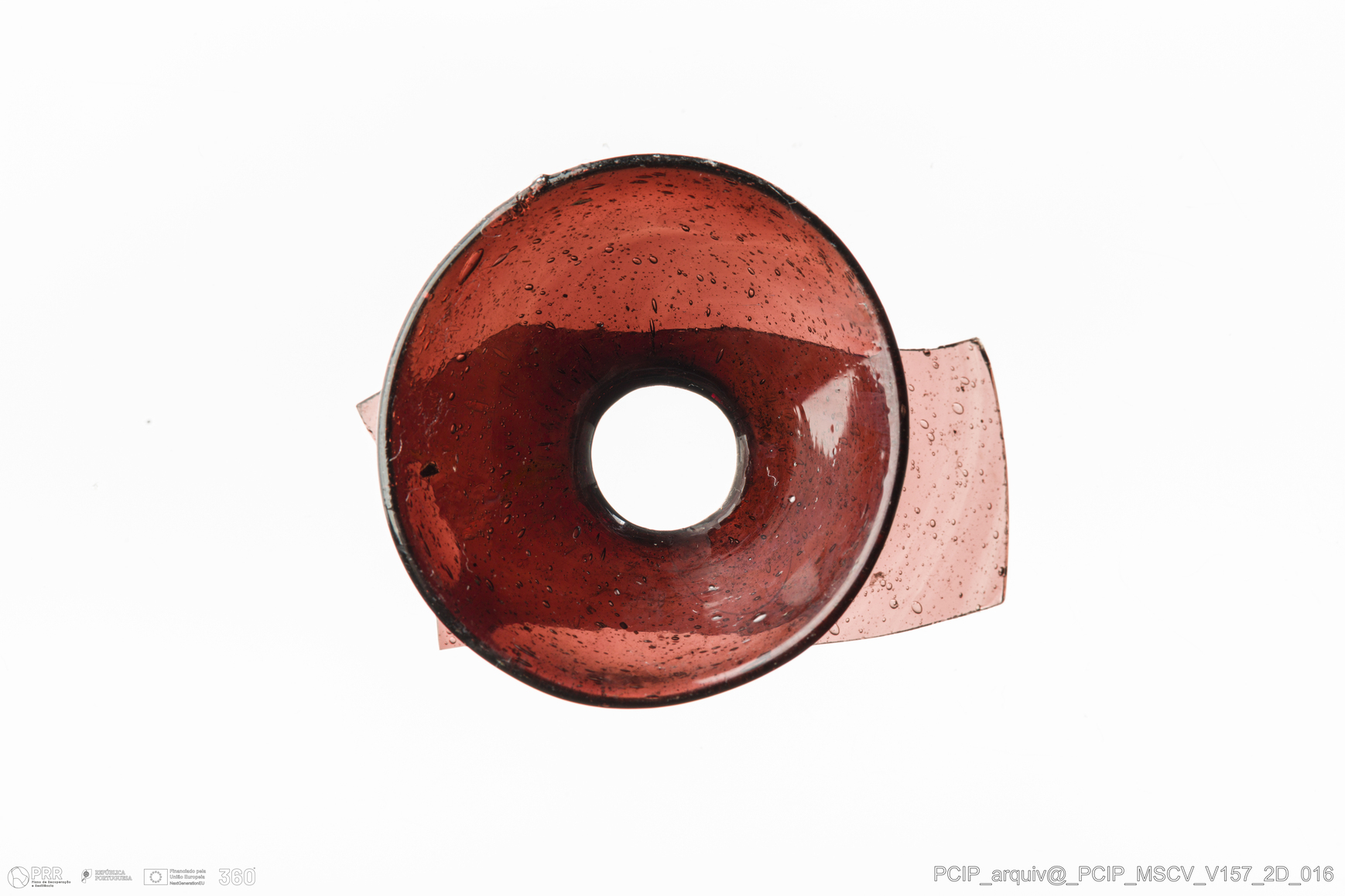 Matéria/Técnica: Vidro; Cronologia: Século XVII; Autoria: Desconhecida; Dimensões: Diâmetro do bordo: 33mm.