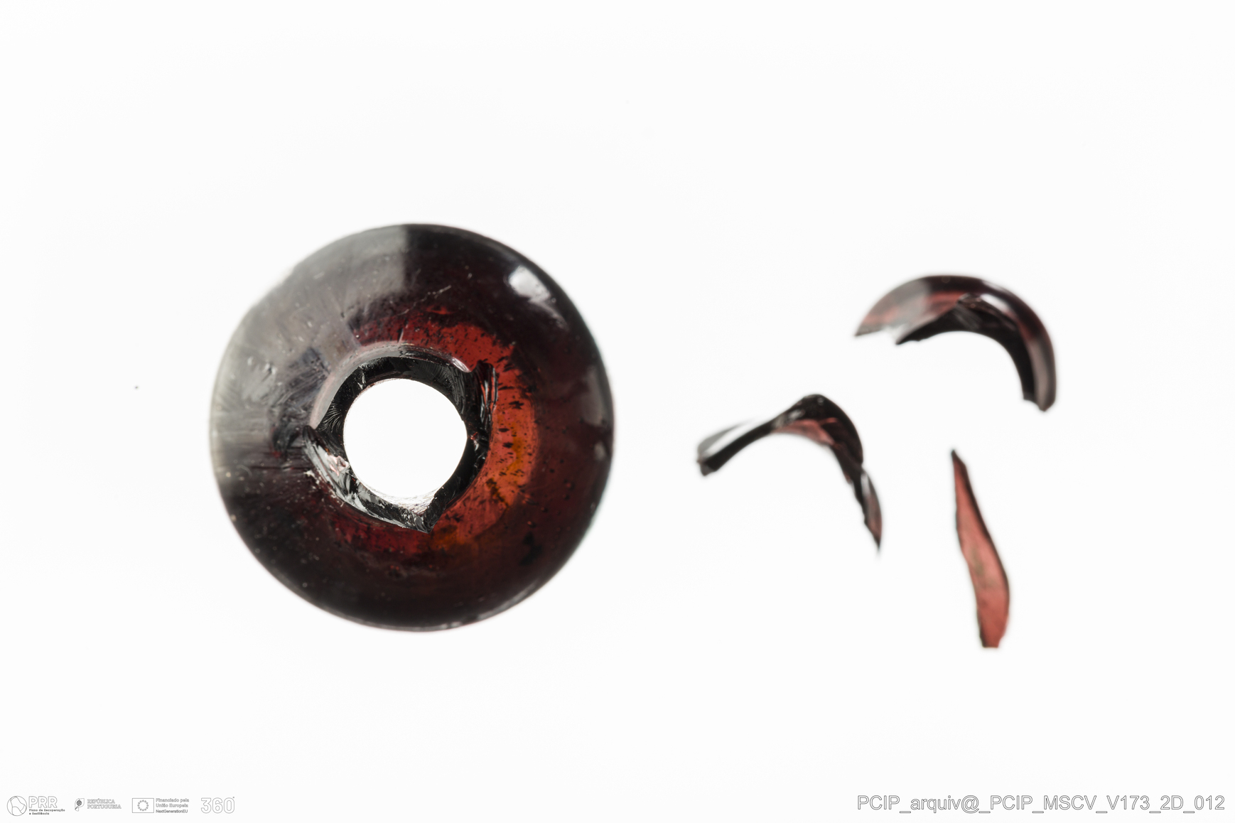 Matéria/Técnica: Vidro; Cronologia: Século XVII; Autoria: Desconhecida; Dimensões: Diâmetro bordo: 16mm.