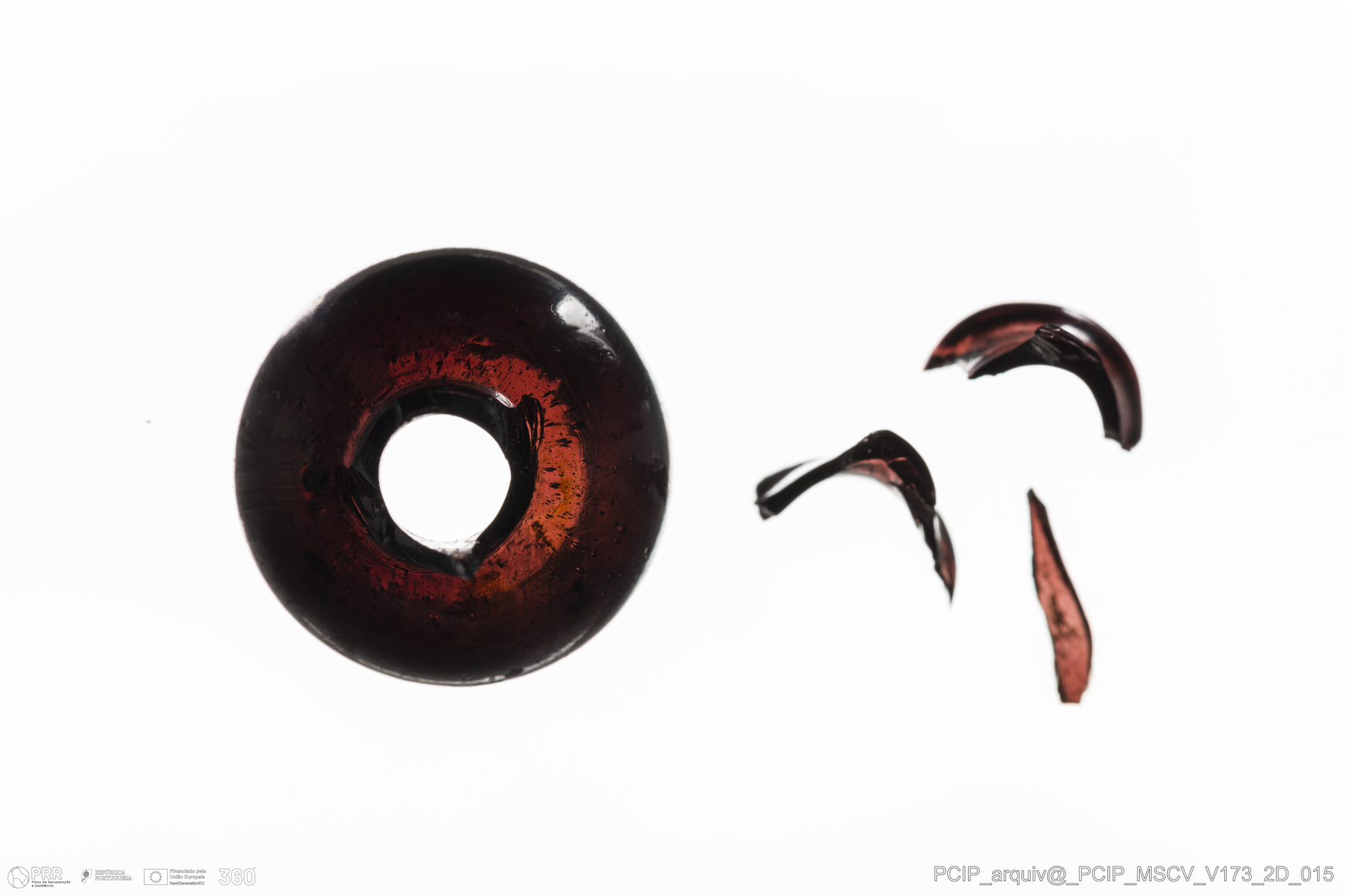 Matéria/Técnica: Vidro; Cronologia: Século XVII; Autoria: Desconhecida; Dimensões: Diâmetro bordo: 16mm.