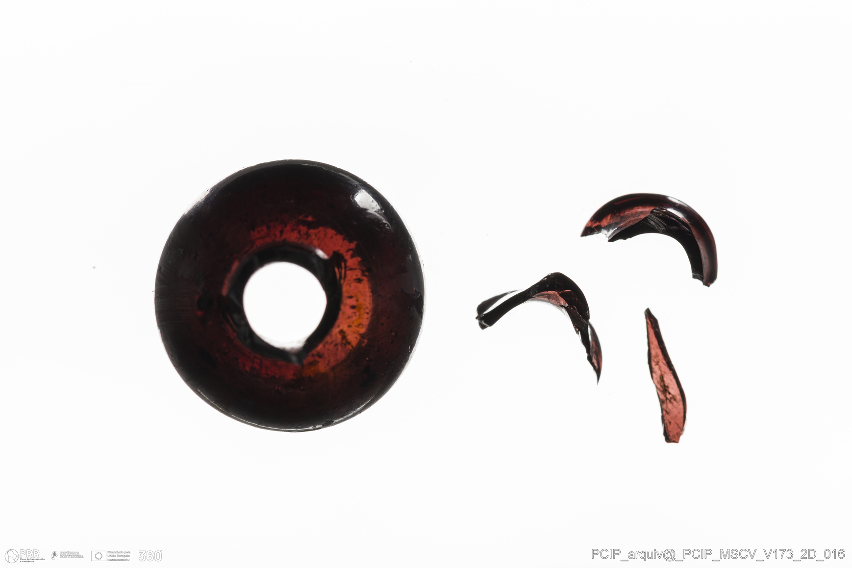 Matéria/Técnica: Vidro; Cronologia: Século XVII; Autoria: Desconhecida; Dimensões: Diâmetro bordo: 16mm.